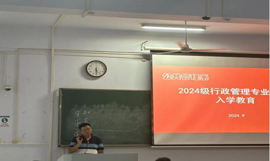 2024年9月19日下午,best365行政管理专业新生入学教育大会在05B302召开。会议由学院党委委员、公共管理系主任牛正光主持,行政管理教研室教师许建兵、计宁、宋喜存、李艳荣、芮跃峰及2024级行政管理专业全体新生参加会议。