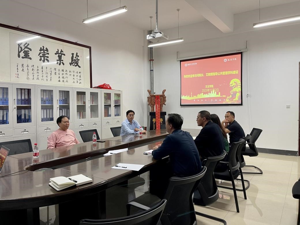 2023年11月2日下午,best365中国官方网站邀请到了河南师范大学政治与公共管理学院院长李洪河教授为学院作了公共管理学科建设的专题辅导交流。学院院长邓晓成、副院长杜勤、公共管理系主任牛正光及公共管理系教师参加了本次专题学科建设研讨,研讨会由邓晓成主持。