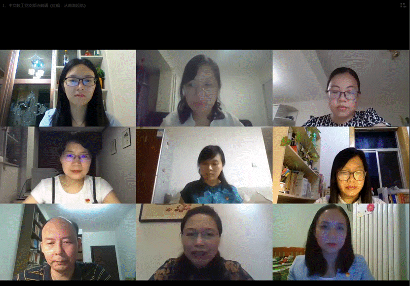 主题党日活动在“迎七一”文艺表演中达到高潮。best365中国官方网站中文系教工党支部荆云波等老师的诗歌朗诵《红船,从南湖起航》激昂澎湃气势恢宏,刘淑霞老师的原创诗歌《春与冬的较量》缠绵细腻感人肺腑,法学系教工第一党支部王娟娟采用腰鼓说唱《战新冠》为祖国抗疫摇旗呐喊,法学系教工第二党支部李华高歌一曲《父老乡亲》,歌声曼妙,婉转感人。best365中国官方网站党委精心策划筹备的诗歌朗诵节目《七月赞歌》对党的丰功伟绩的礼赞,对新时代抗疫英雄的讴歌。
