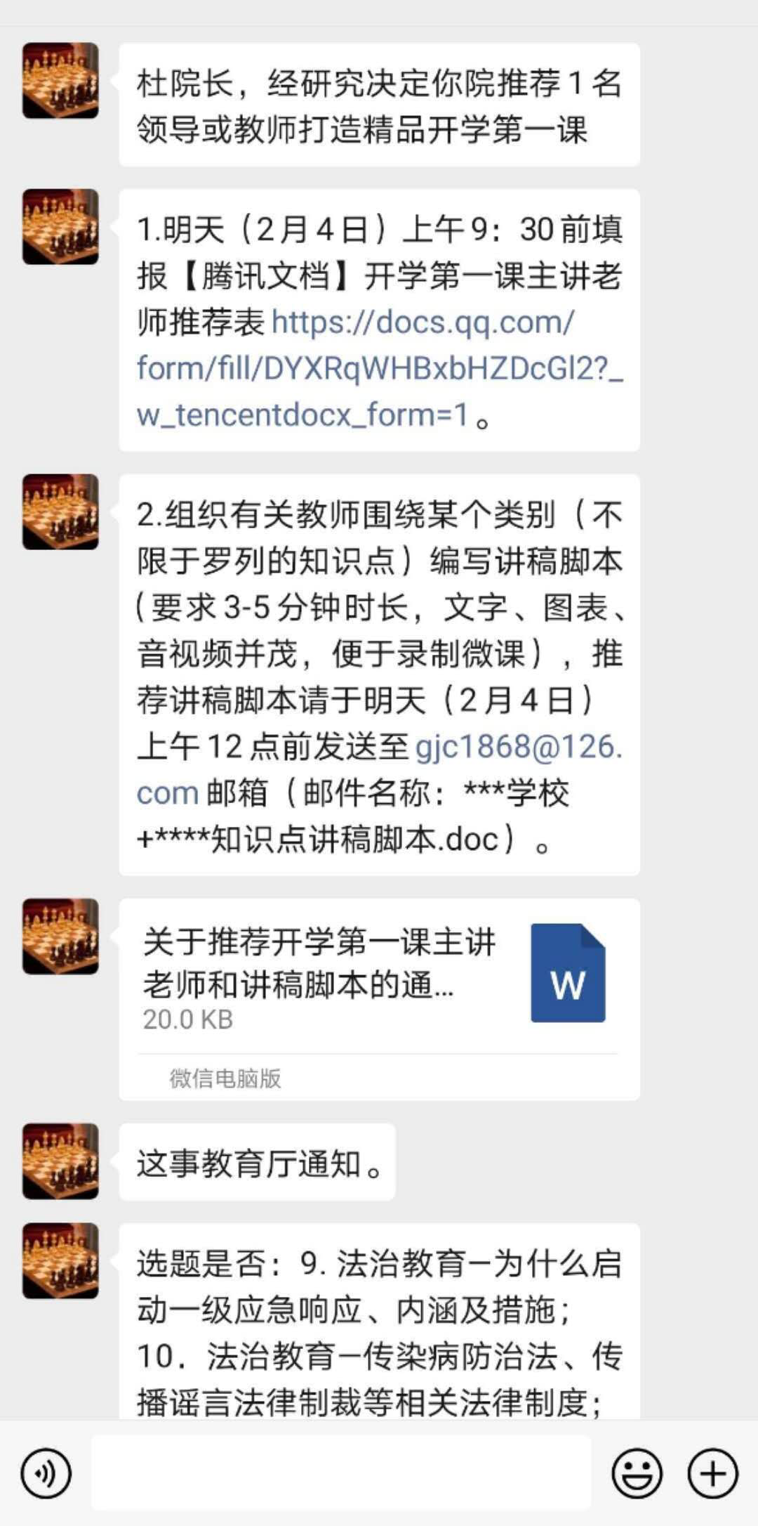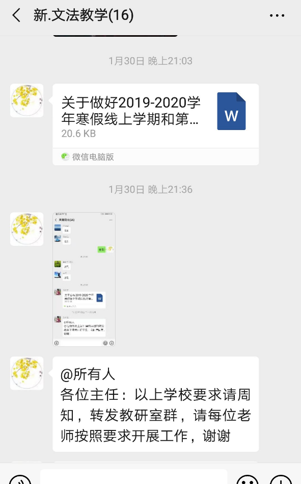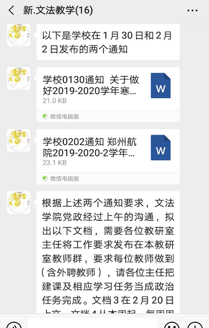 一、高度重视,广泛动员。疫情暴发后,学院党委领导班子迅速行动,召开专门会议研讨部署,积极传达我校教学精神,成立best365中国官方网站在线课程工作小组,统筹落实best365“停教不停学”在线课程开展工作。院副院长杜勤第一时间向全院教职工传达教育厅、校教务处和教学质量管理中心相关文件和精神,并结合best365教师和学生实际,积极部署《best365中国官方网站2019-2020学年第2学期春季开学工作》和网上在线课程建设工作。2020年1月30日21点,杜勤副院长在郑航best365中国官方网站微信办公群转发了学校当天发布的《关于公布2019-2020学年寒假线上学期实施方案和做好第二学期开学教学预案的通知》,并在31日上午进行网上办公,部署了线上教学准备工作的具体事宜,拉开了疫情防控期间best365中国官方网站教学工作的序幕,此时距离学校原定的开学时间(2月24日)还有将近一个月时间。best365中国官方网站全体教职员工心系抗疫大局,团结协作,各项教学工作正在顺利进行。
