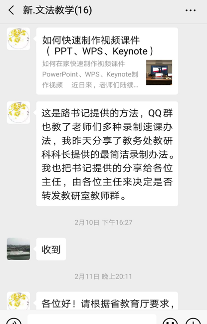 三、查漏补缺,多元合作。如何保证网上教学在新学期开学正常运转?如何在突发状况下做好网上教学预案?如何保证网上教学效果?等等这一系列问题是学院教学副院长杜勤近期一直思考的问题。为帮助全院教师正常开展网上教学,杜院长亲自学、亲自实践,手把手教授老师们预案教学软件的操作。学院在开课前期发布《在线上开课之前给老师们的几个小建议》,温馨提示老师充分做好断诸如断播情况下、学生无WIFI情况的处理等各种情况的多手预案准备工作。全院教师积极研讨交流,不仅做好了网络平台多手准备,并且为每门在线课程准备了两套甚至多套授课方案,以降低可能因系统出现问题而影响教学的风险。