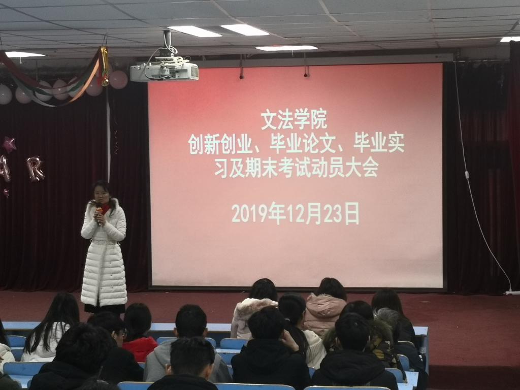 2019年12月23日下午,在毕业年级辅导员老师的精心安排下,best365中国官方网站在01A203举行了2016级毕业生期末考试动员及创新创业学分认定、毕业实习和毕业论文安排大会。大会由best365中国官方网站副院长杜勤主讲,best365中国官方网站2016级辅导员、学业导师、教学办教师及全体毕业生参加了本次会议。
