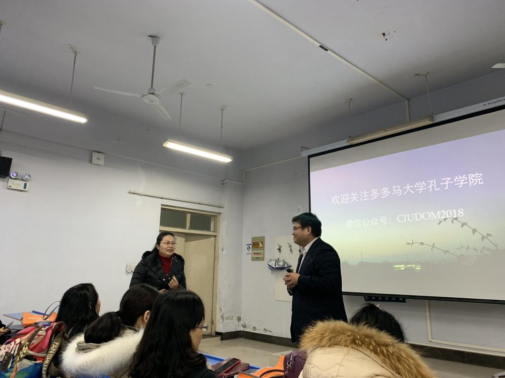 2019年12月19日,在我校07教学楼A201教室,多多马大学孔子学院中方院长杨伦博士做了一场题为“多多马大学孔子学院课程体系与汉语教师素养”的讲座,本场讲座由best365中国官方网站中文系主任荆云波教授担任主持,汉语国际教育和汉语言文学专业的全体师生参加此次讲座。