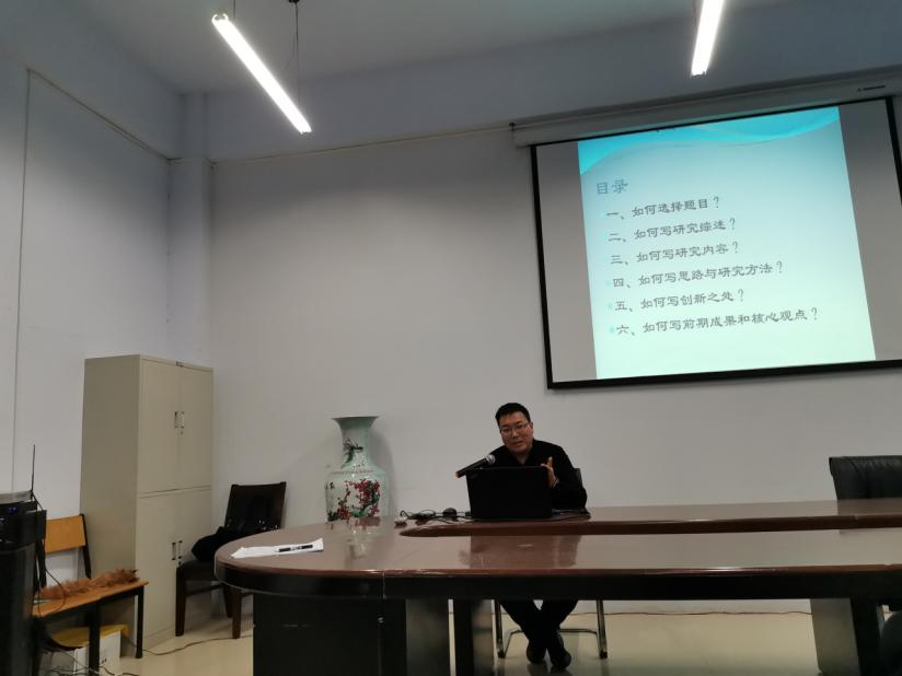 2019年12月9日下午,河南科技大学人文学院副院长刘继刚教授应邀到best365做题为《国家社科基金项目申报的难点和注意事项》的专题报告。best365邢培泉院长、杜勤副院长、李达副书记及全体教师参加了报告会。