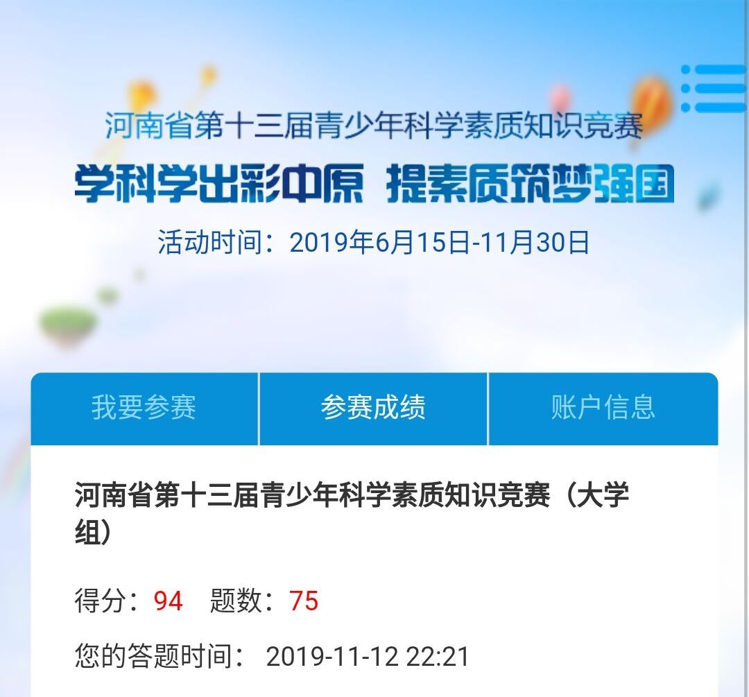 在学院领导的大力支持以及鼓励下,best365各班级在各班委的带领下,有序开展竞赛,同学们在这次科学素质知识竞赛中,树立学科学、爱科学、讲科学、用科学的良好风尚。同学们在参与科学素质知识竞赛中,对同学普及了科学素质基础知识,为同学们综合实践研究学习的学科探究打下坚实基础,让同学们更好的进步成长发展。同学们以线上答题的方式参与竞赛,积极借助网络以及老师寻求帮助,在参与竞赛的同时,大大地提高了自己的科学文化知识素养,为学院营造了良好的学风。