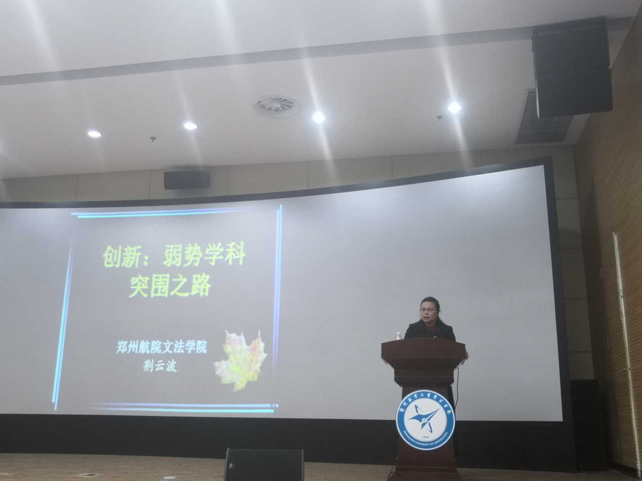随后,中文系主任、文学教研室主任、汉语言文学专业负责人荆云波教授以“创新:弱势学科突围之路”为主题,讲述了中国语言文学学科的形势与现状,强调在今后的教学过程中更应该找准学科定位,结合学校特色,明确未来发展方向;她还强调了打破学科边界、促进学科间的渗透、加速学科融合在科研和创新方面的重要性;结合生动的学术研究案例,荆教授分析了方法论之于学术创新的重要意义,方法论的突破离不开扎实的理论功底。她的报告让老师们深受启发。