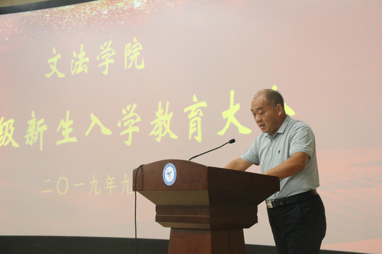 大会伊始,院长邢培泉向新生简要介绍了我校的办学历史、办学条件、学科建设和学术研究等基本情况,同时祝愿2019级新生能够更好地融入大学生活。