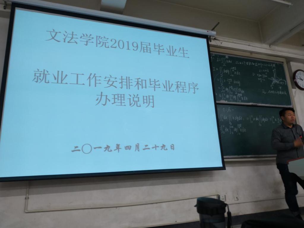 会上,刘朋鑫具体讲解了2019届毕业生就业工作安排:毕业生择业期注意事项、就业手续的办理程序、个人档案转接,以及学校就业信息管理反馈系统的使用方法和毕业生党员组织关系转接等相关问题。