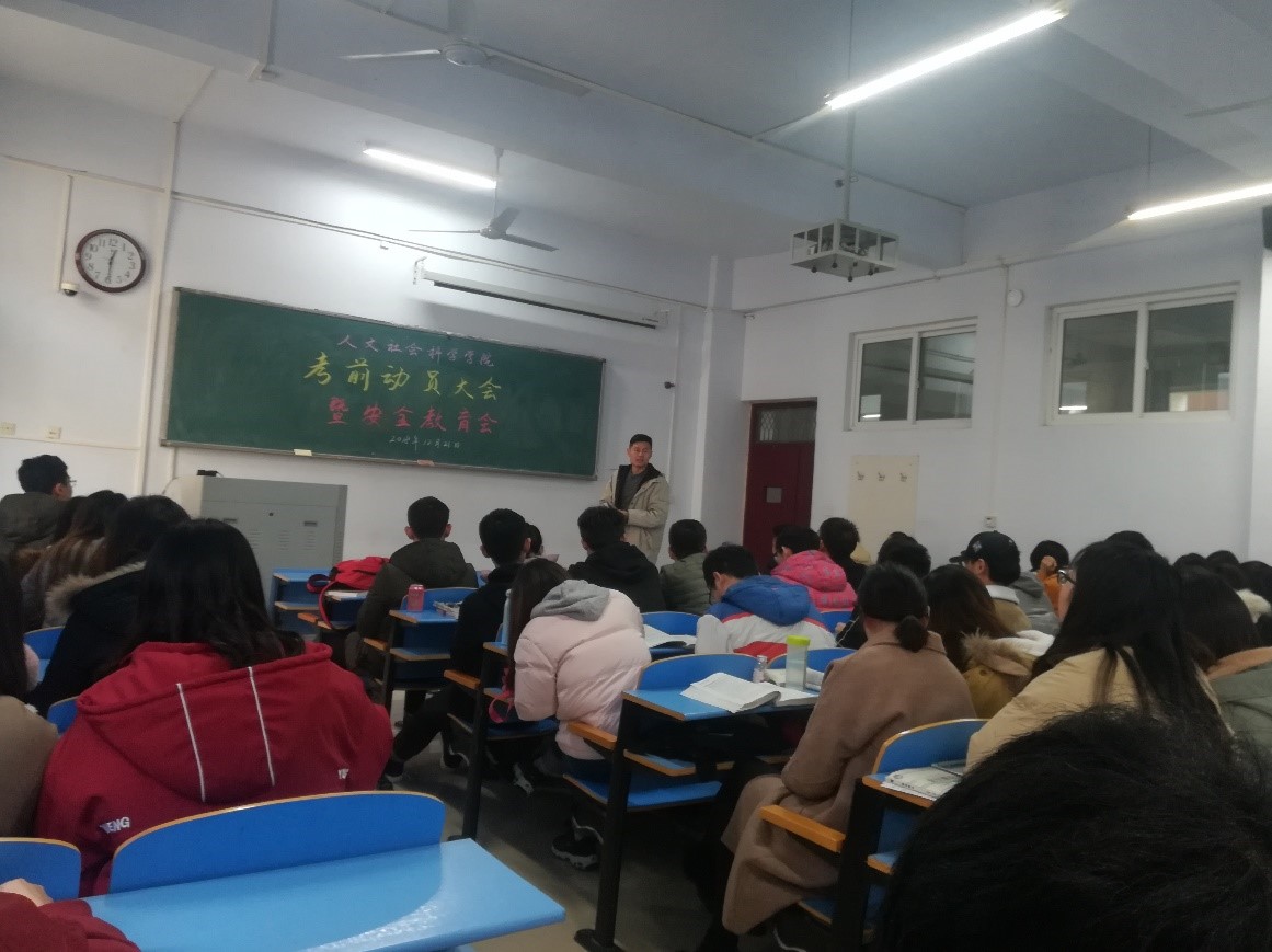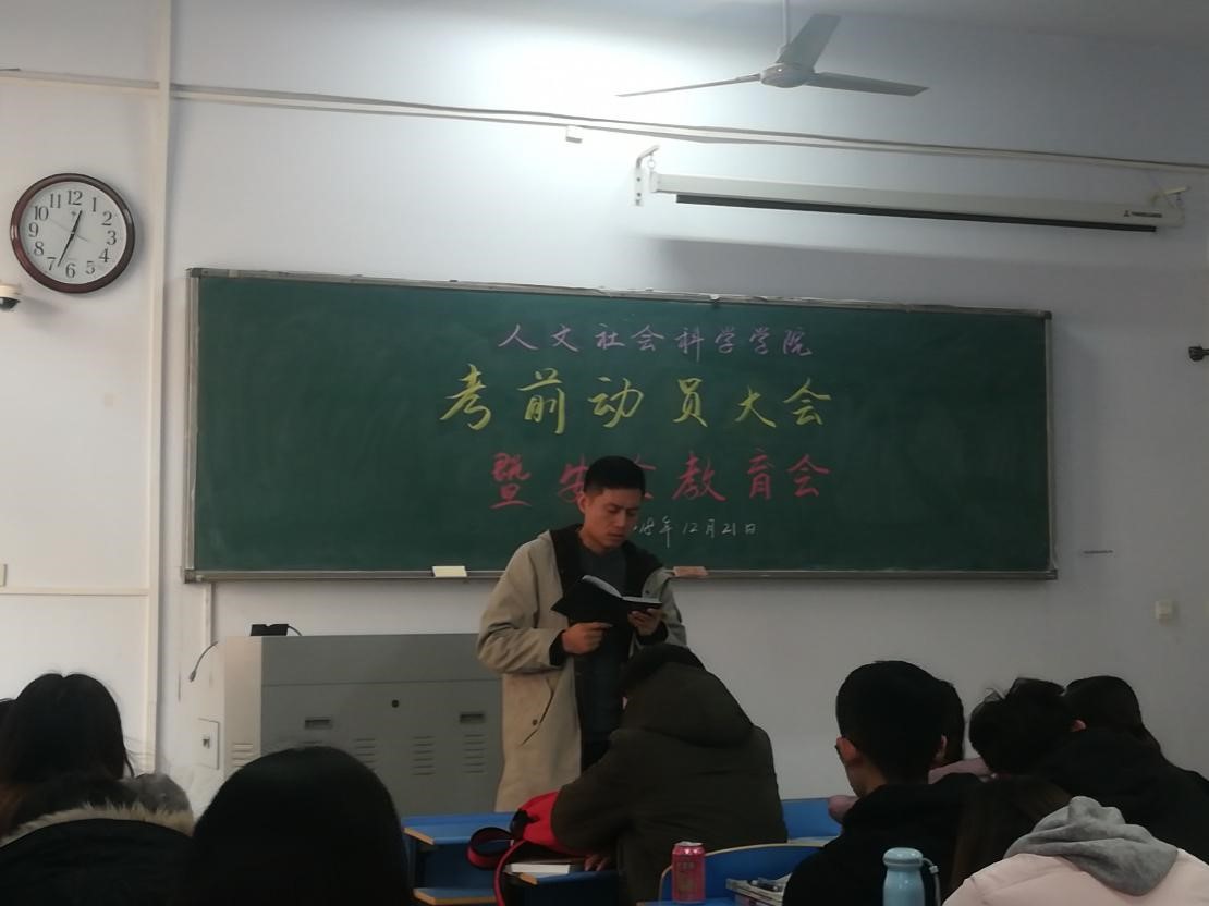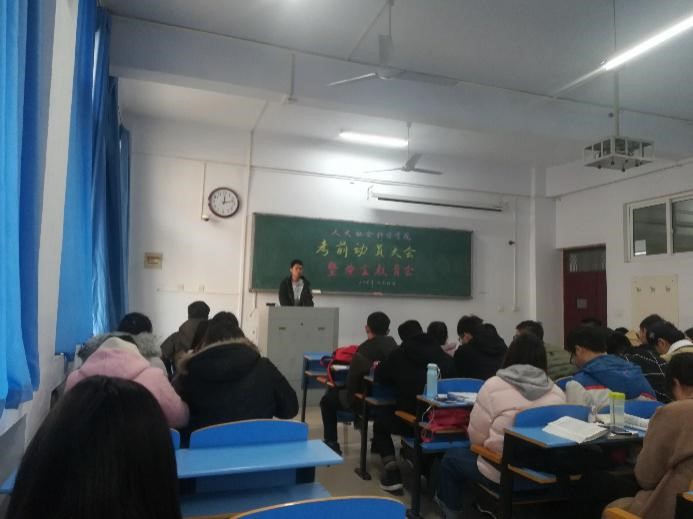 12月21日中午,2107级在05A305教室召开考风考纪暨安全教育工作会。全体班委及宿舍长参加,2017级辅导员张旭老师主持会议并讲话。