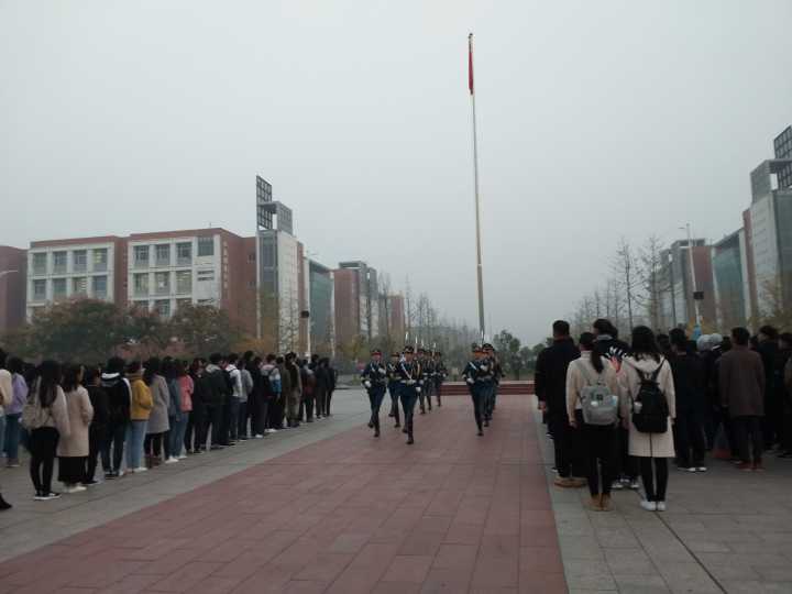 2018年11月12日早上七点,人文社会科学学院在中心广场参加了本周的升旗仪式,人文社会科学学院团总支书记刘爽与大一至大三全体同学参加此次升旗仪式。 仪式伊始,在全体学生的目光注视下,国旗班的同学迈着整齐的步伐将国旗护送至国旗台下,伴随着庄严的国歌,全体学生凝视国旗冉冉升起。 最后,国旗班的同学整齐有序的退场,升旗仪式到此结束。升旗有助于增强全体师生的爱国主义精神,培养对祖国的崇高敬意,更能激励所有人带着无限的热情与激情投入学习与工作,更好地实现个人梦想。