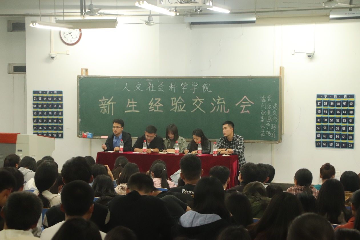 10月16日晚,人文社会科学学院新生交流会在07B107教室举行。此次会议邀请了大四优秀学生代表刘东瑞、张竞文、雷国鹏、孟玮前、朱宁超作为嘉宾来交流自身经验。全体2018级新生参加了此次新生经验交流会。会议由学习部的付秀芳主持。
