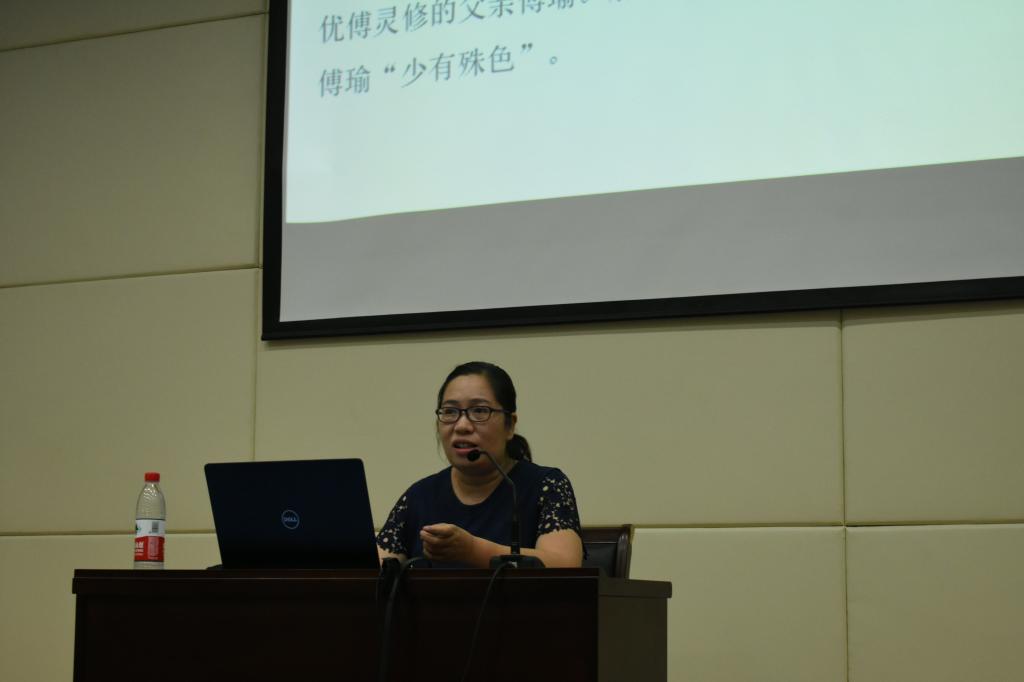 杨志敏老师的《河南省濒临剧种的现状及“非遗保护”》主题讲座用幽默的语言讲述了河南戏曲的发展历史,并从河南戏曲的濒危现状讲到河南戏曲的“非遗”保护。讲解中,杨志敏老师以诙谐有趣语言和精彩的内容赢得大家阵阵掌声。