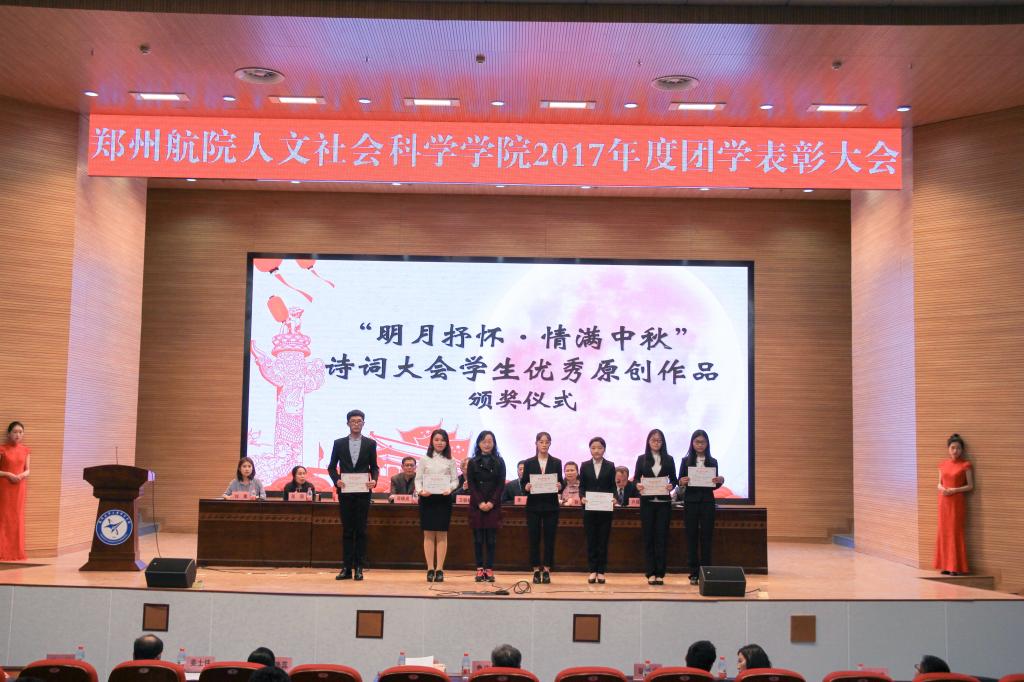 本次大会对2017年度各项团学活动中表现优秀的学生和班级分别进行表彰。会议伊始,由人文社会科学学院副院长邓晓成为本次大会致辞,他对2017年度各项团学活动所取得成绩的给予了充分肯定,向表彰大会的成功召开表示热烈祝贺。刘淑霞老师对第三届撷英杯和中秋诗会大会学生原创作品进行了精彩点评,阐明了同学们在诗词创作方面的进步与不足。方飞同学代表撷英杯和中秋诗会获奖学生发言。文学教研室主任荆云波、语言教研室主任原鹏分别宣读了第三届撷英杯创意写作大赛和中秋诗词大会获奖学生名单,鲁庆中教授、沈晴教授、张艳蕊副教授分别为获得特等奖和一等奖的学生颁奖。在接下来的best365首届公共管理案例分析大赛的获奖作品和团队的表彰中,行政管理教研室主任许建兵首先宣读获奖名单,公共管理教研室主任吴琦进行了大赛点评,随后获奖学生代表赵烨发言讲话,许建兵副教授、吴琦副教授、胡晨成博士、姜士伟老师分别为获奖学生以及获得优秀组织奖的团队颁奖。