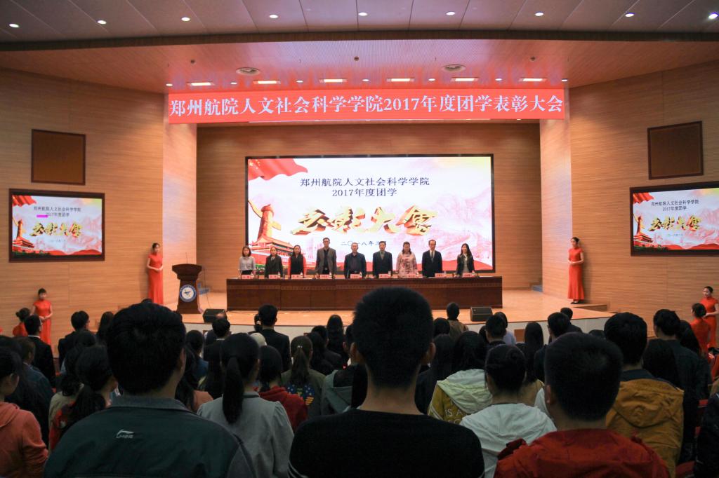 3月29日晚7:30,人文社会科学学院2017年度团学表彰大会在图书馆第一报告厅隆重举行。人文社会科学学院党总支书记卫铁林、副书记李达、副院长邓晓成、语言教研室主任原鹏、文学教研室主任荆云波、行政管理教研室主任许建兵、公共事业管理教研室主任吴琦、语言教研室沈晴教授、刘淑霞老师,文学教研室鲁庆中教授、张艳蕊副教授、行政管理教研室宋喜存老师、姜士伟老师、公共管理教研室胡晨成博士、各年级政治辅导员以及2015级、2016级、2017级学生300余人出席此次表彰大会。表彰大会由团总支书记刘爽主持。