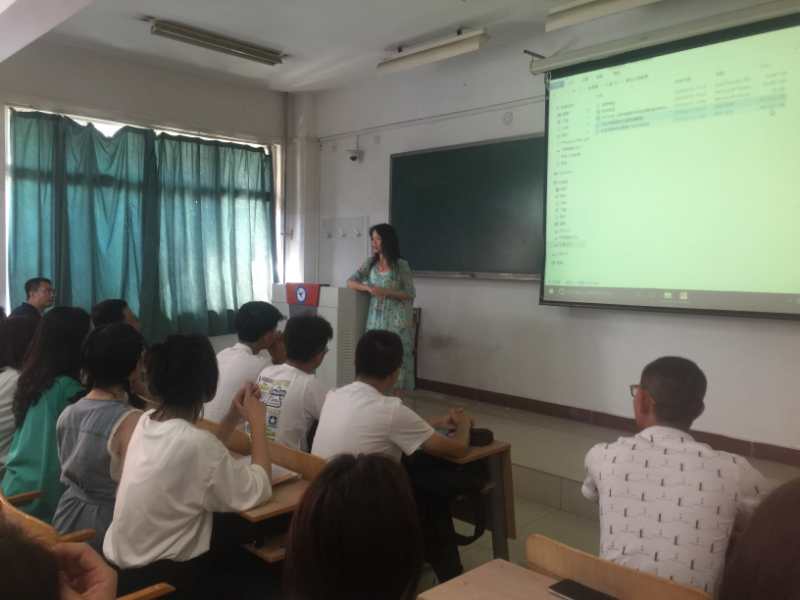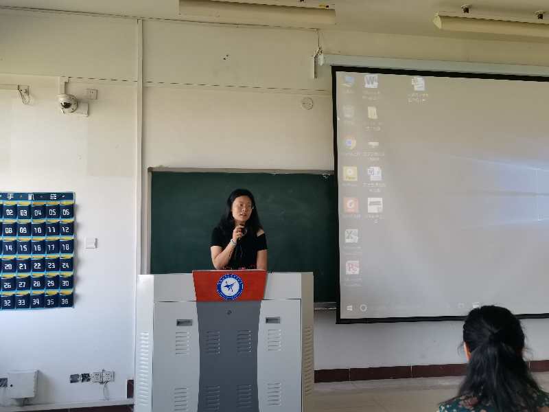 沈晴向同学们介绍专业的师资力量以及大学学习和高中学习的差异,希望同学们受文化的熏陶,致力学习,热爱生活、积极向上,用心体验生活之美,向美而行。