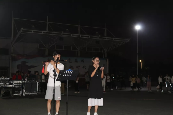 音乐节在两位主持人的妙语连珠中拉开帷幕。赵竞哲同学的开场《独舞》给观众们带来了一场视觉盛宴,彰显了文法学子蓬勃向上的青春力量。而接下来的《水星记》更是婉转动听,观众们纷纷挥动着闪光灯,沉浸在艺术世界里。 一曲笛子演奏的《星月神话》更是将活动带到了高潮,潮流与古典相结合,现代与传统相交融。欢呼声,尖叫声,音乐声一起,以星空为底,以歌声为伴共同庆祝佳节。