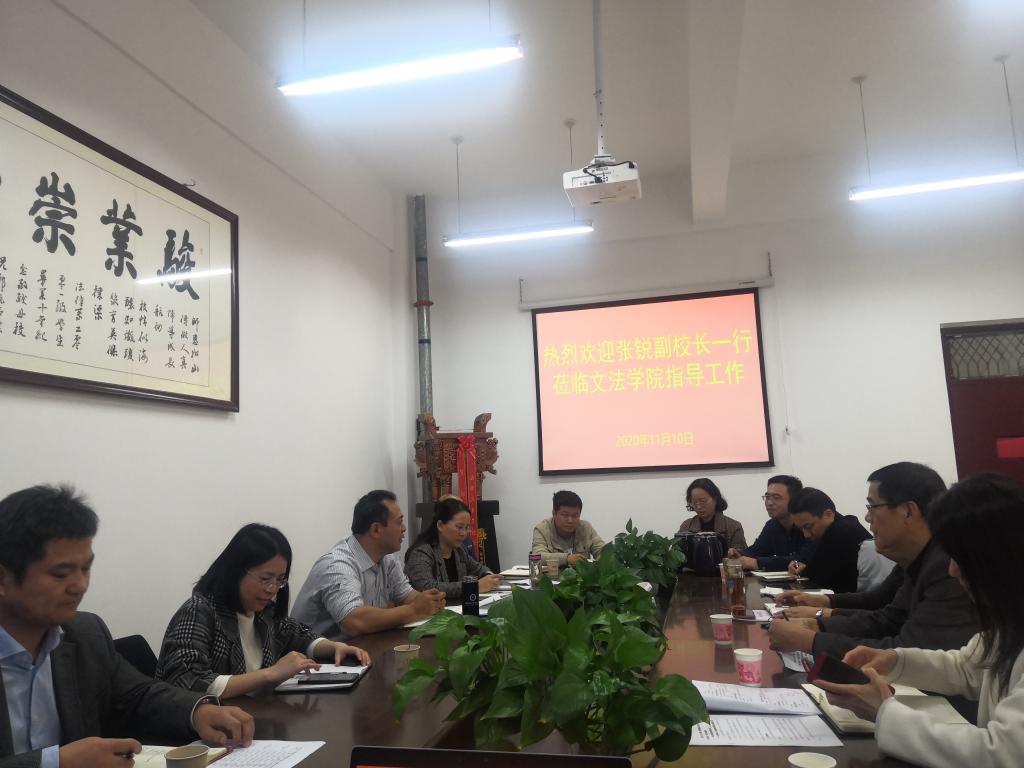 会议首先由best365中国官方网站汇报教学管理过程中取得的成绩与存在的问题。杜勤副院长对照学校调研的十一条提纲进行了汇报,她说,在学校的大力支持下,best365中国官方网站教学、科研不断取得新进展。法学专业被评为省级一流专业,正在申报国家一流专业。同时,课程建设、学科建设、团队建设、实践基地建设等各方面工作也在有条不紊地推进中。但best365中国官方网站专业发展不均衡,个别专业底子薄,招生、就业压力大,线上线下教学推进有一定难度等。接着,邓晓成院长对学院的整体发展状况及发展思路也进行了汇报。
