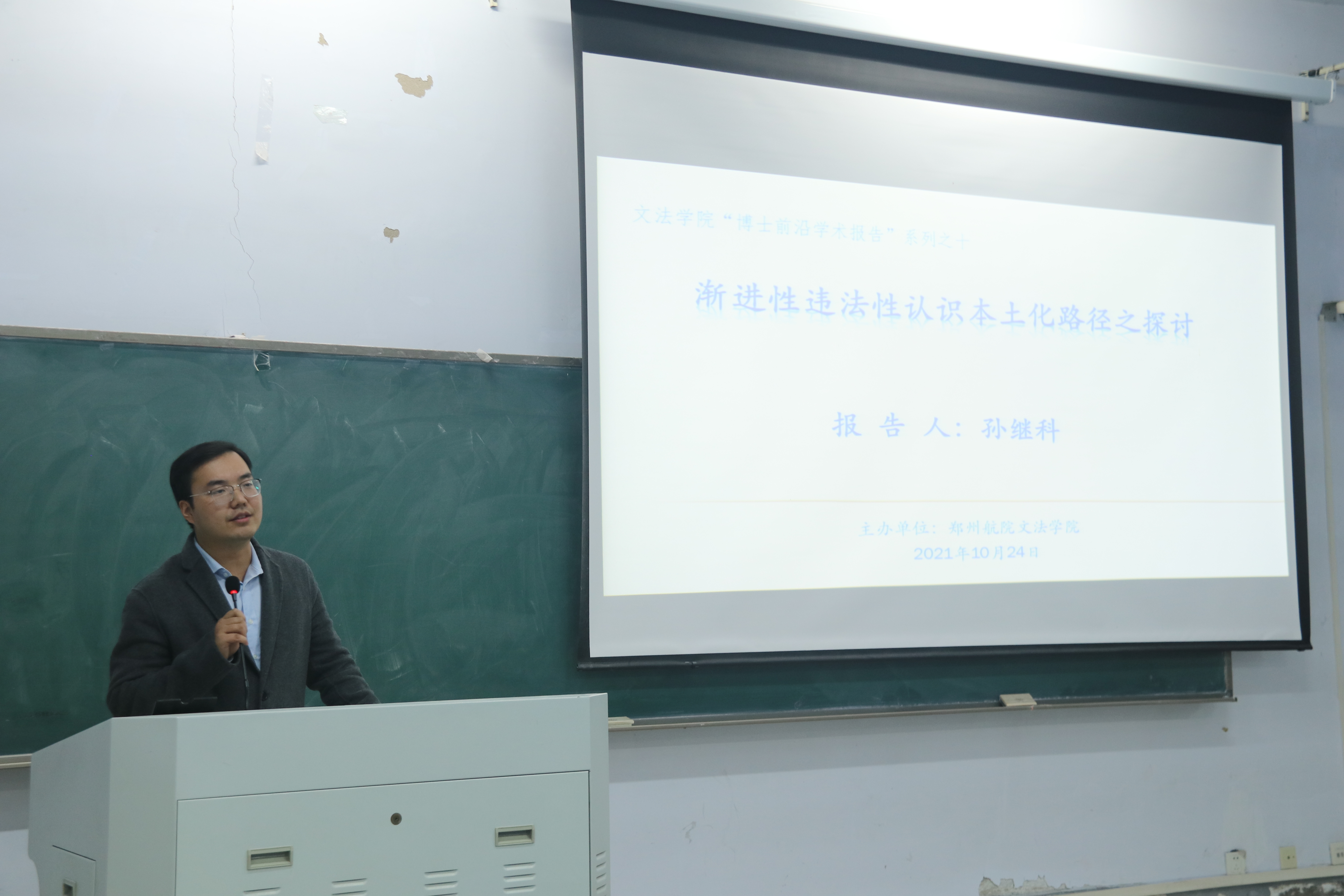 2021年10月24日晚,best365中国官方网站博士前沿学术报告在05教学楼B101如期举行,线上腾讯会议与直播同步进行。best365刑事法教研室教师孙继科博士以《渐进性违法性认识本土化路径之探讨》为题与线上线下师生进行了交流。