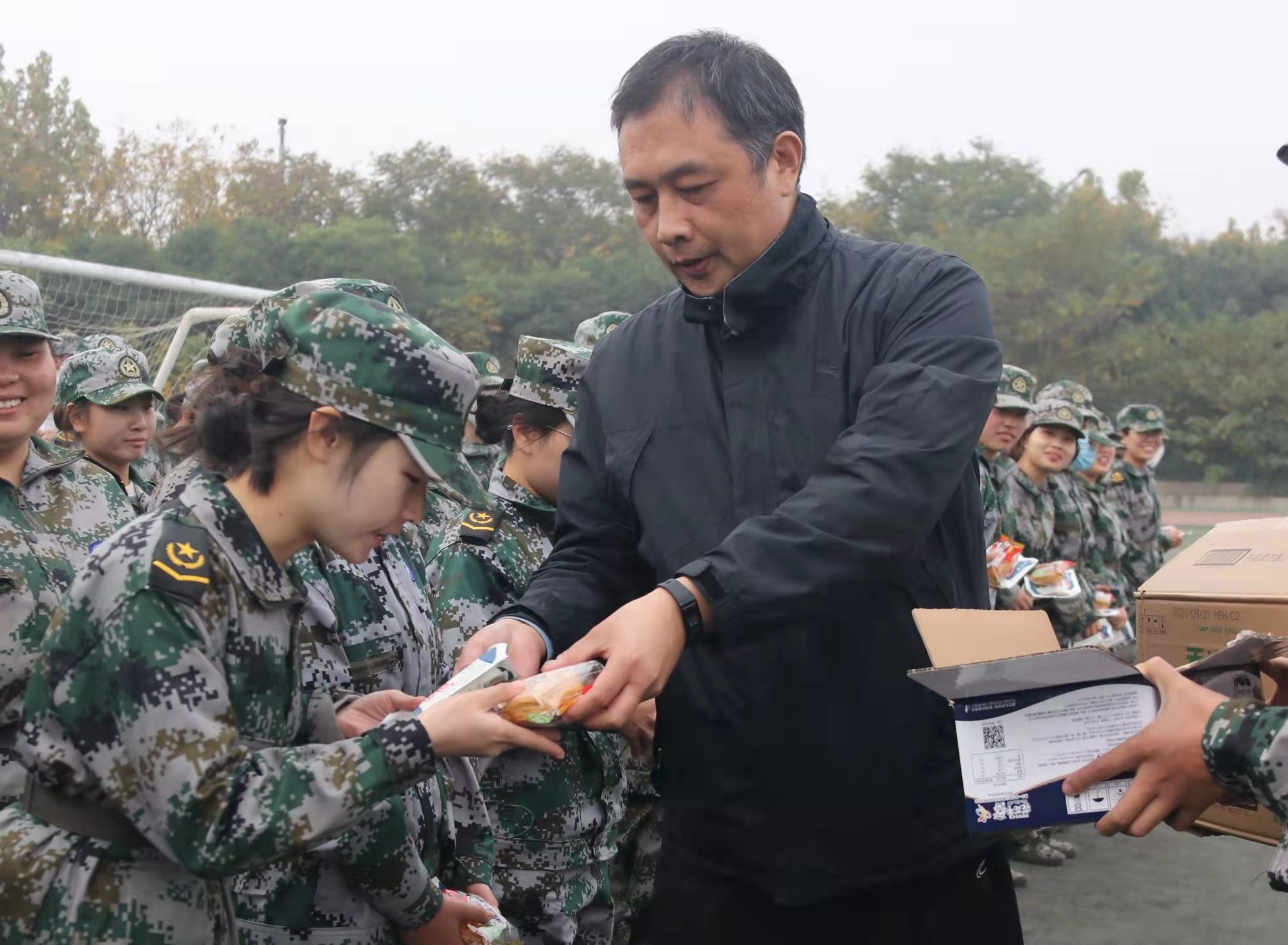最后,学院领导和老师为军训教官和同学们发放酸奶和面包以表关心和鼓励,希望同学们能在接下来的军训中继续端正态度,认真训练,交出一份圆满的军训答卷。
