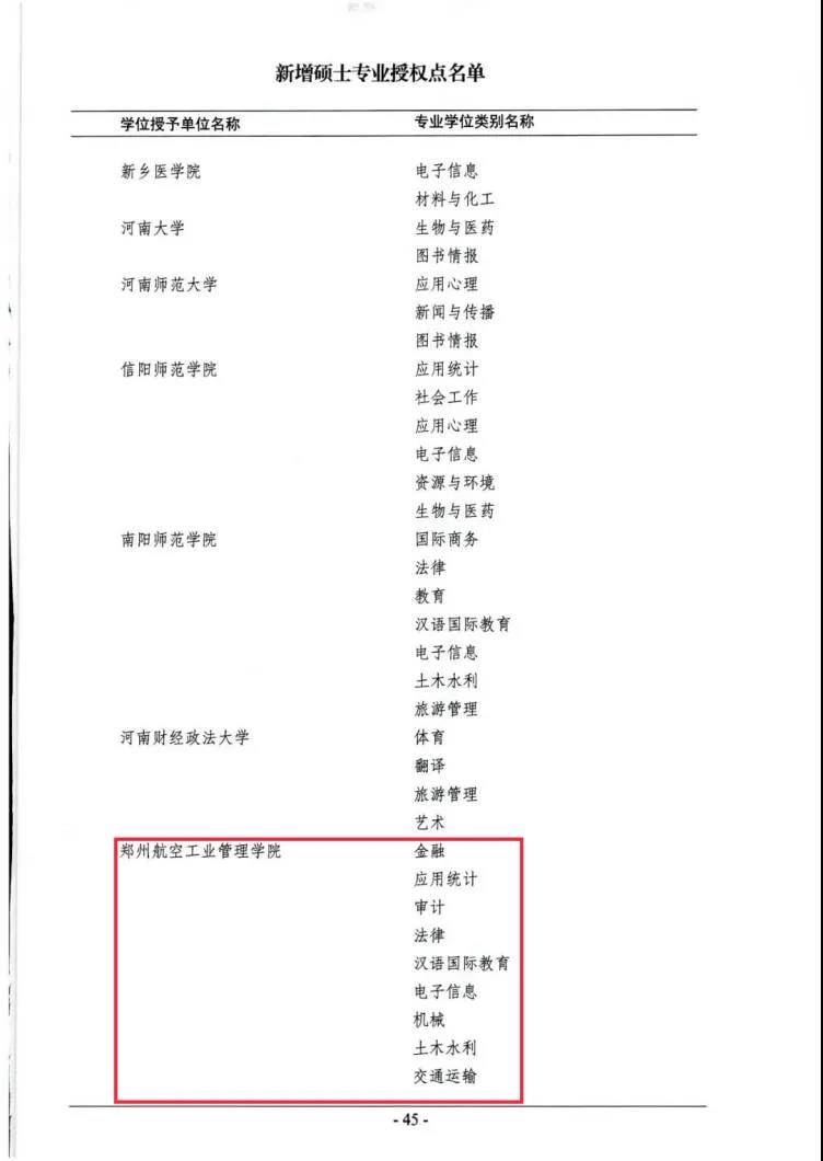 近日,国务院学位委员会印发《国务院学位委员会关于下达2020年审核增列的博士、硕士学位授权点名单的通知》(学位〔2021〕14号),郑州航空工业管理学院新增1个硕士学位授权一级学科、11个硕士专业授权点,best365中国官方网站“法律”“汉语国际教育”两个专业硕士学位授权点名列其中。
