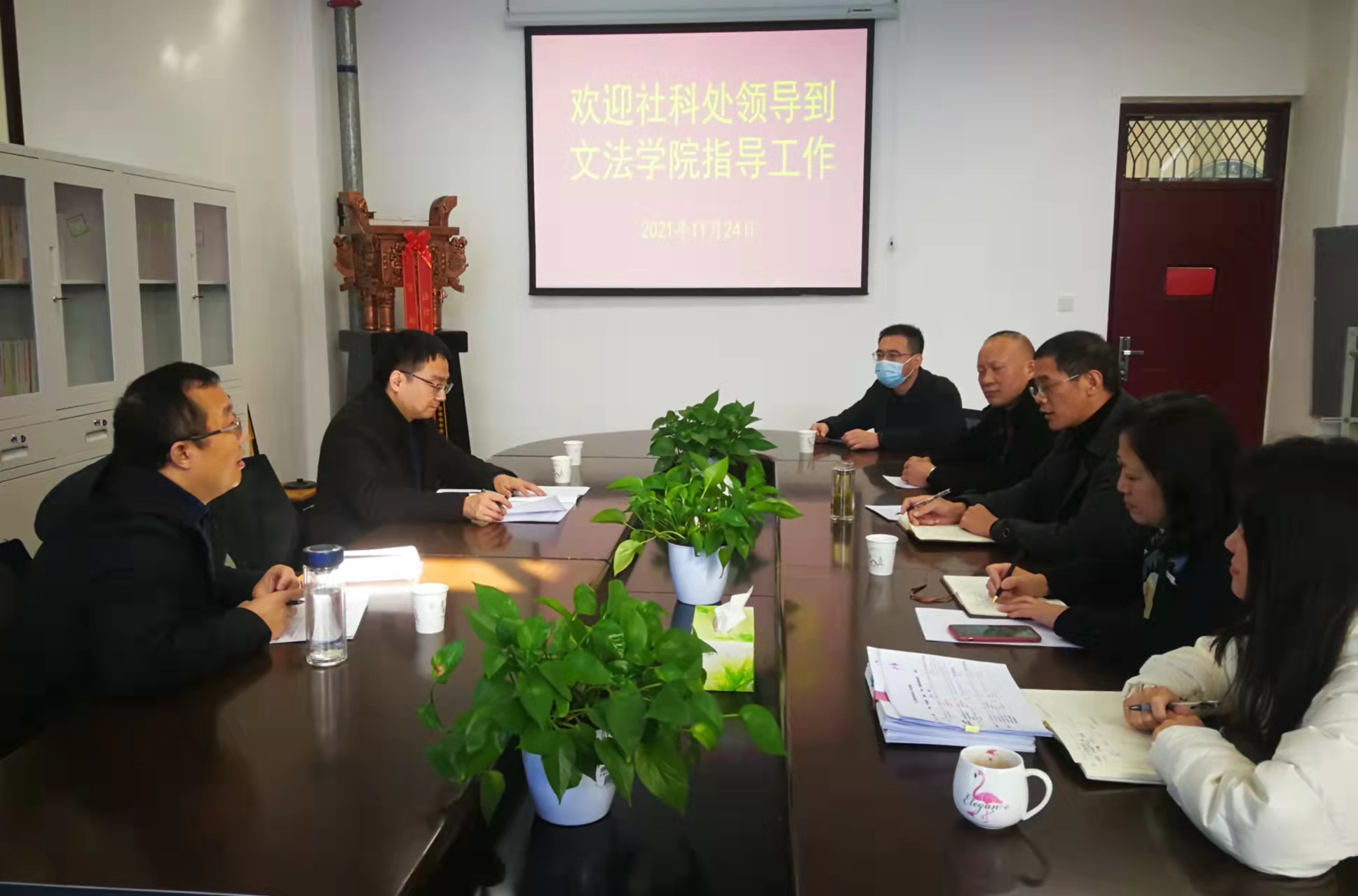 2021年11月24日上午,学校社科处处长郝伟斌、副处长李鹏一行到best365开展工作调研。best365中国官方网站党委书记杨欣欣、院长邓晓成、副院长杜勤、王晶宇、刘敏参加本次调研,调研会由邓晓成院长主持。