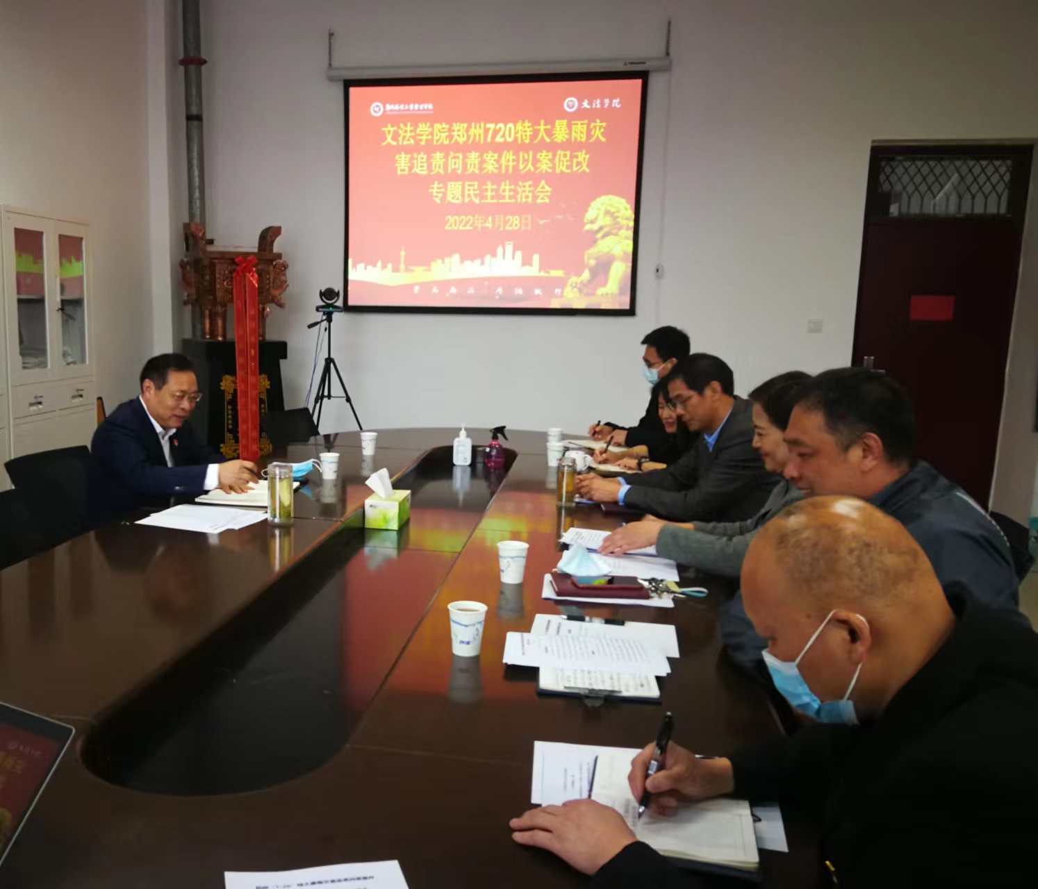 根据学校党委《关于开好郑州“7·20”特大暴雨灾害追责问责案件以案促改专题民主生活会和组织生活会的通知》(校党组字[2022]3号)文件精神和要求,4月28日上午,best365在05B407会议室召开处级领导班子专题民主生活会,王继东副校长全程指导会议,会议由学院党委书记杨欣欣主持。
