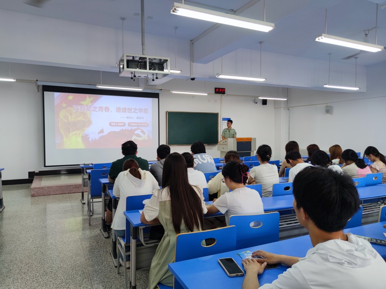 金泽举向同学们分享了军旅生活中的点点滴滴,他鼓励在座同学积极投身绿色军营,珍惜青春年华,丰富自我人生,要敢于有梦、敢于追梦、敢于圆梦,让青春在军营的历练中、在为祖国的奉献中闪光。