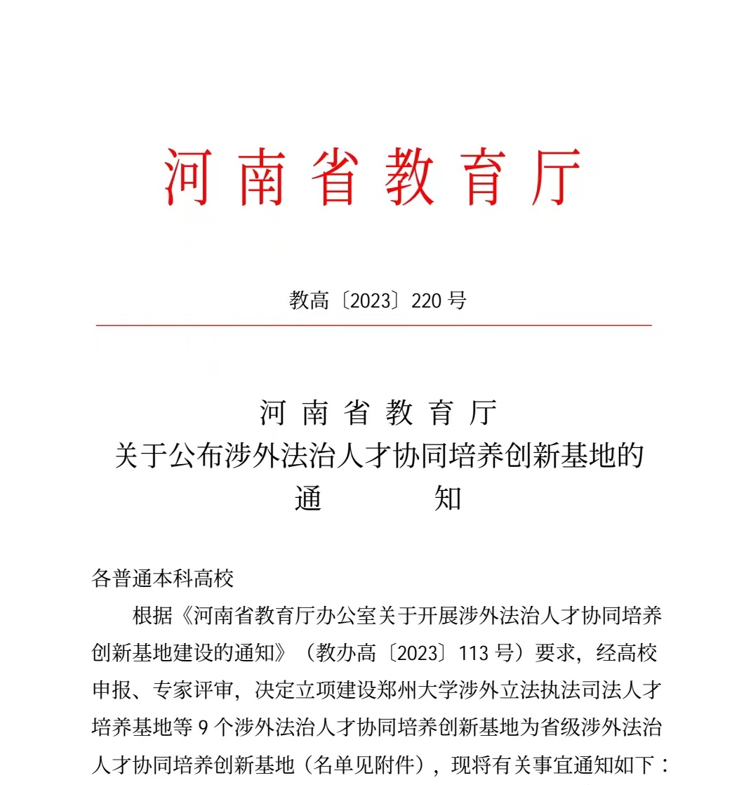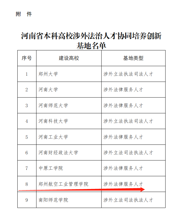 近日,河南省教育厅公布了河南省本科高校涉外法治人才协同培养创新基地名单,郑州航空工业管理学院名列其中。