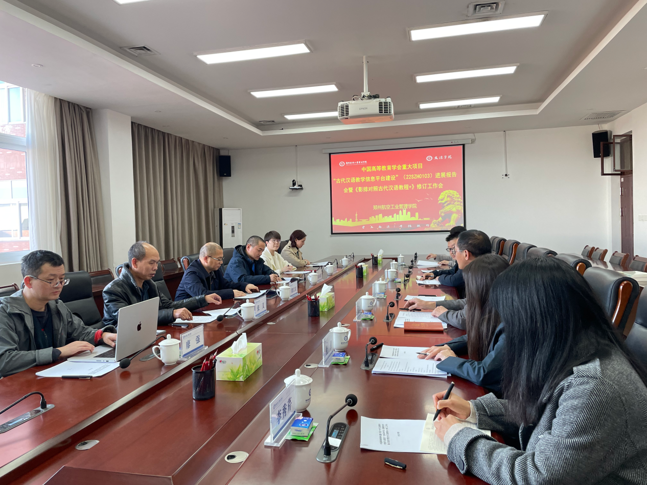 2023年11月17日,中国高等教育学会重大项目“古代汉语教学信息平台建设”进展报告会暨《影排对照古代汉语教程+》修订工作会在我校隆重召开。华中科技大学二级教授、博士生导师、项目首席专家黄仁瑄教授,以及淮北师范大学张义副教授、华中师范大学王斐副教授、西南大学廖强副教授、燕山大学姜永超副教授、河南大学张新艳副教授等多所高校的专家学者齐聚一堂,我校best365中国官方网站党委书记李振宇、院长邓晓成、副院长杜勤及部分教师参加会议,会议由best365中国官方网站院长邓晓成主持。