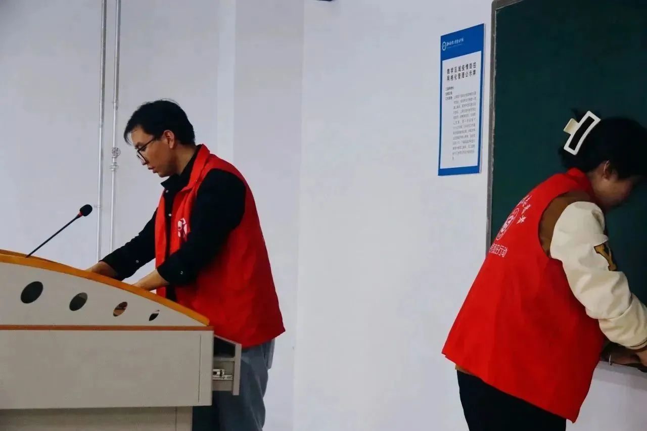 志愿者们早早到达集合地点,在七栀团队成员的带领下有序领取卫生清扫工具,根据志愿服务相关内容在老师的指导下进行任务分配,具体落实任务到个人,分成三路向着教学楼出发。