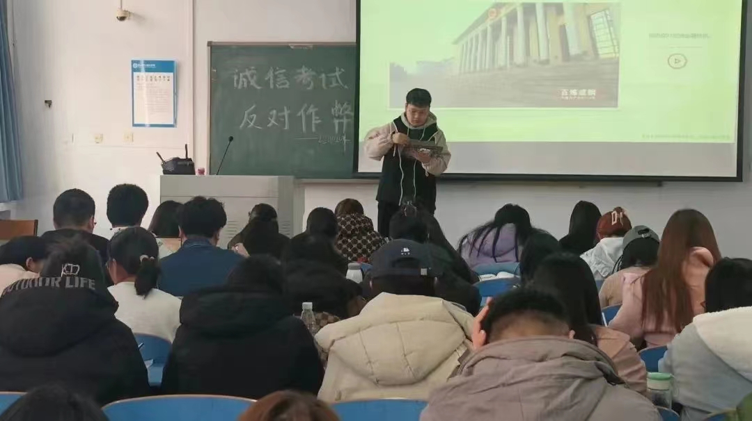 22级由各班班长召开班会,会上强调作为新时代大学生应当以诚信为本,同时呼吁大家端正态度,认真备考,遵守纪律,诚信做人,做一名对自己负责的新时代大学生。