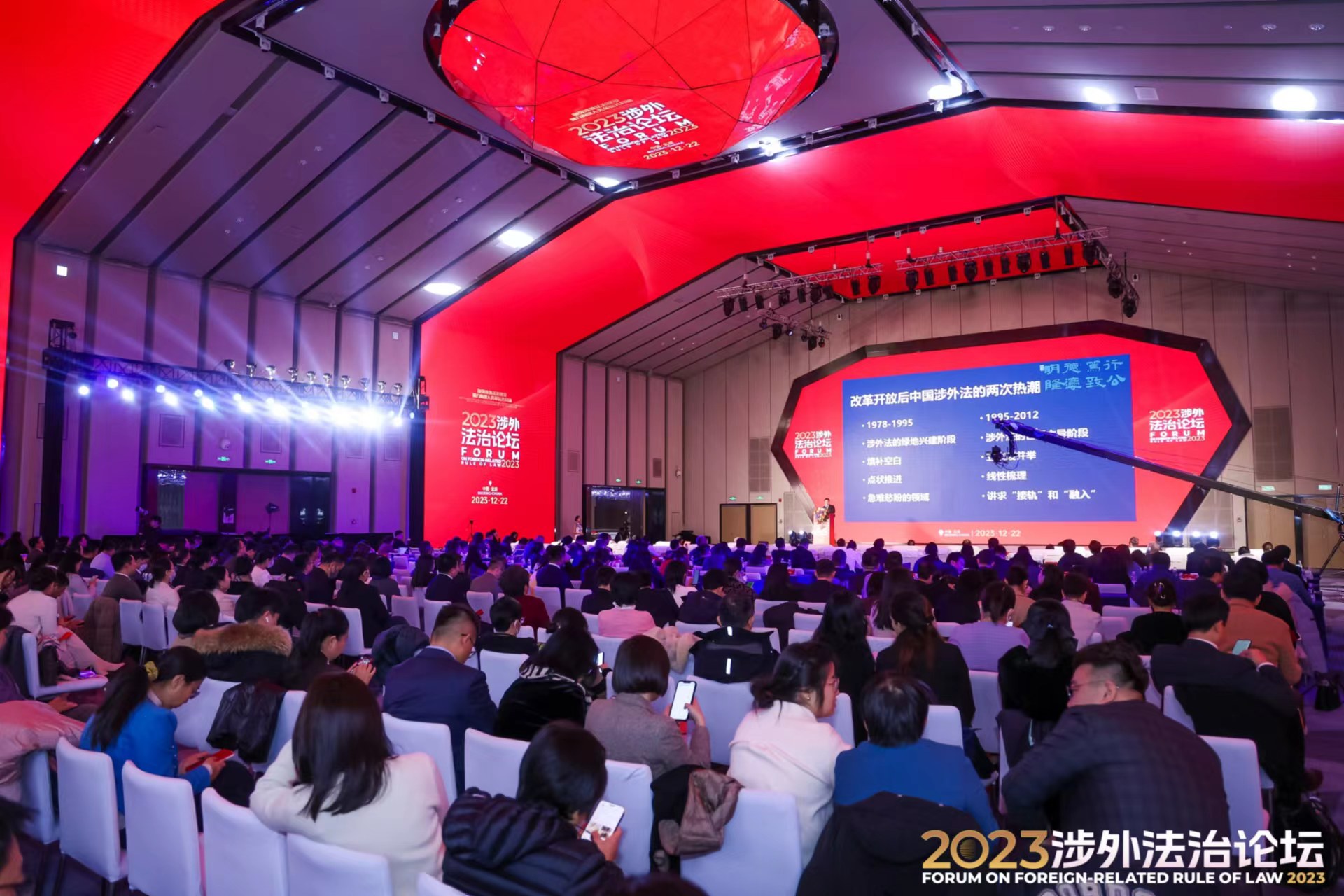 论坛以“加强涉外法治建设,助力构建人类命运共同体”为主题,多位知名专家、学者出席发表主旨演讲,献上精彩纷呈的学术报告,聚焦我国涉外法治体系和能力建设研究,深入贯彻习近平法治思想,响应习近平总书记关于加强涉外法治建设讲话精神,推动涉外法律服务业发展和人才培养等问题的研究,促进相关理论研究和实践发展。