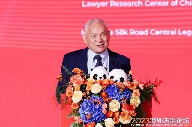 中国法学会国际经济法研究会会长、深圳国际仲裁院理事长沈四宝教授发表了题为《提升涉外法治思维,繁荣涉外法律服务》的主旨演讲。他从立场意识、大协同意识、公开透明意识、人才意识四个方面深入探讨了如何提升涉外法治思维。