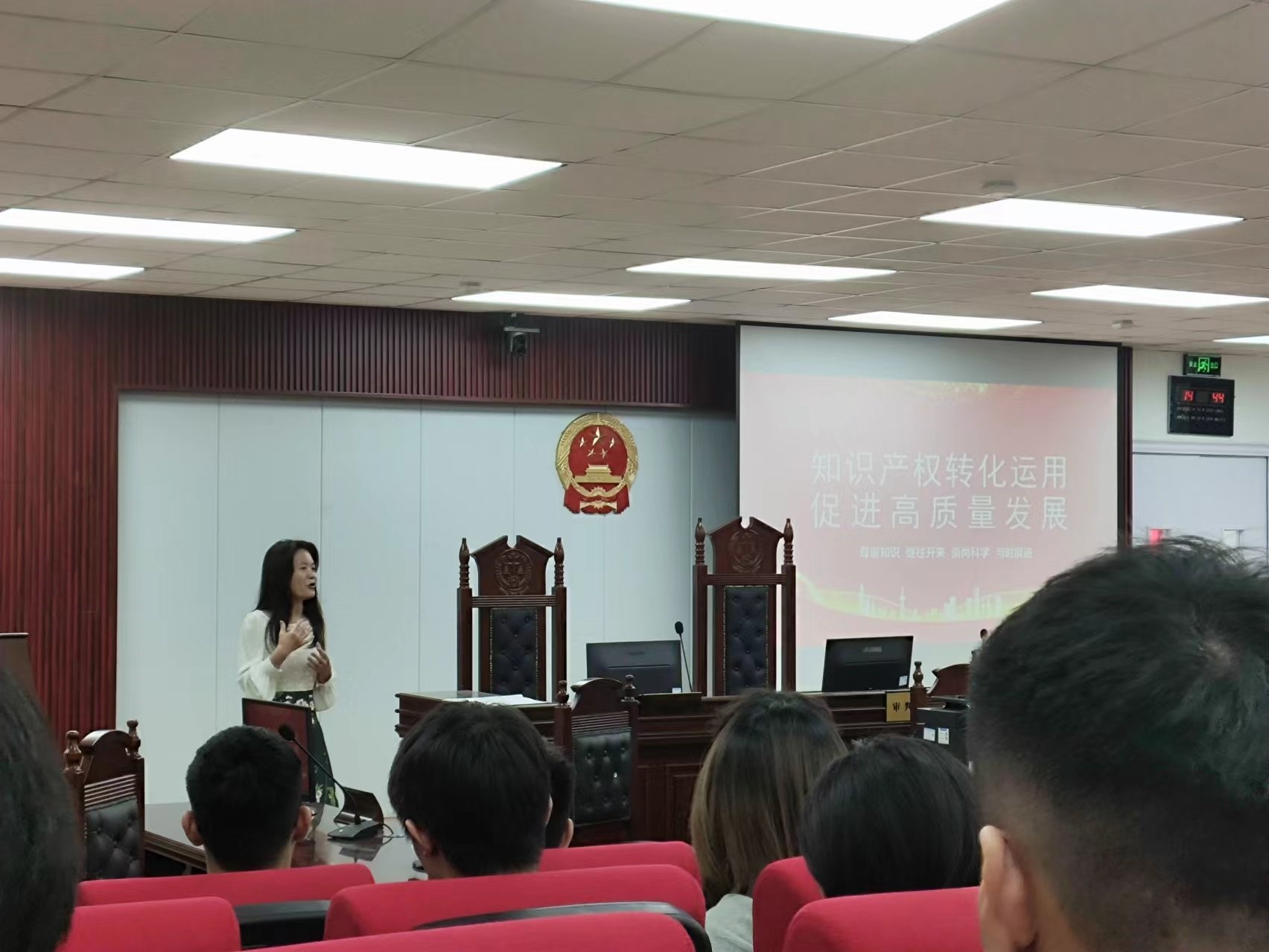 李振宇强调:知识产权作为现代文明的重要标志和国家竞争力的核心要素,对于推动创新发展、促进经济转型升级、增强国家综合国力具有不可替代的作用。同学们要深入学习习近平总书记关于保护知识产权的重要论述和重要指示批示精神,深刻领会举办“世界知识宣传周”的重要意义,牢固树立保护知识产权的意识,全面学习知识产权相关法律知识,做到尊重知识,尊重劳动,尊重创造,尊重创新。杜勤激励同学们要充分发挥好法学专业优势,深刻理解知识产权在服务创新创造,促进新质生产力发展过程中的重要作用,争做保护知识产权的宣传者和践行者。