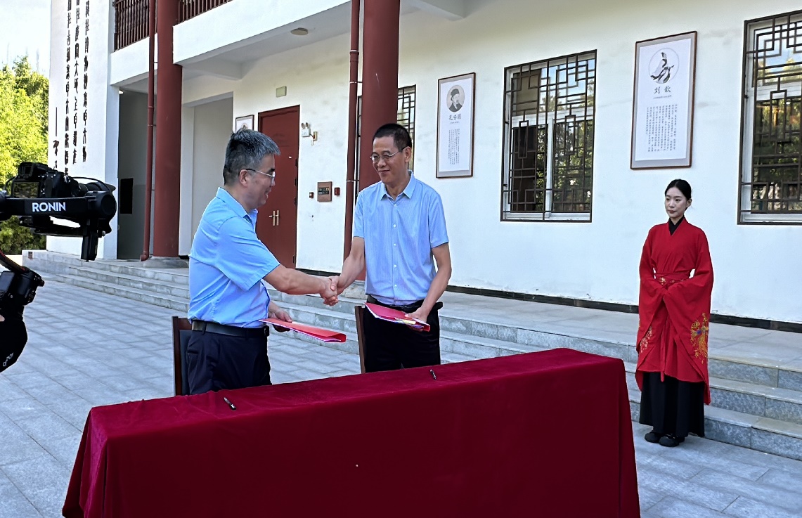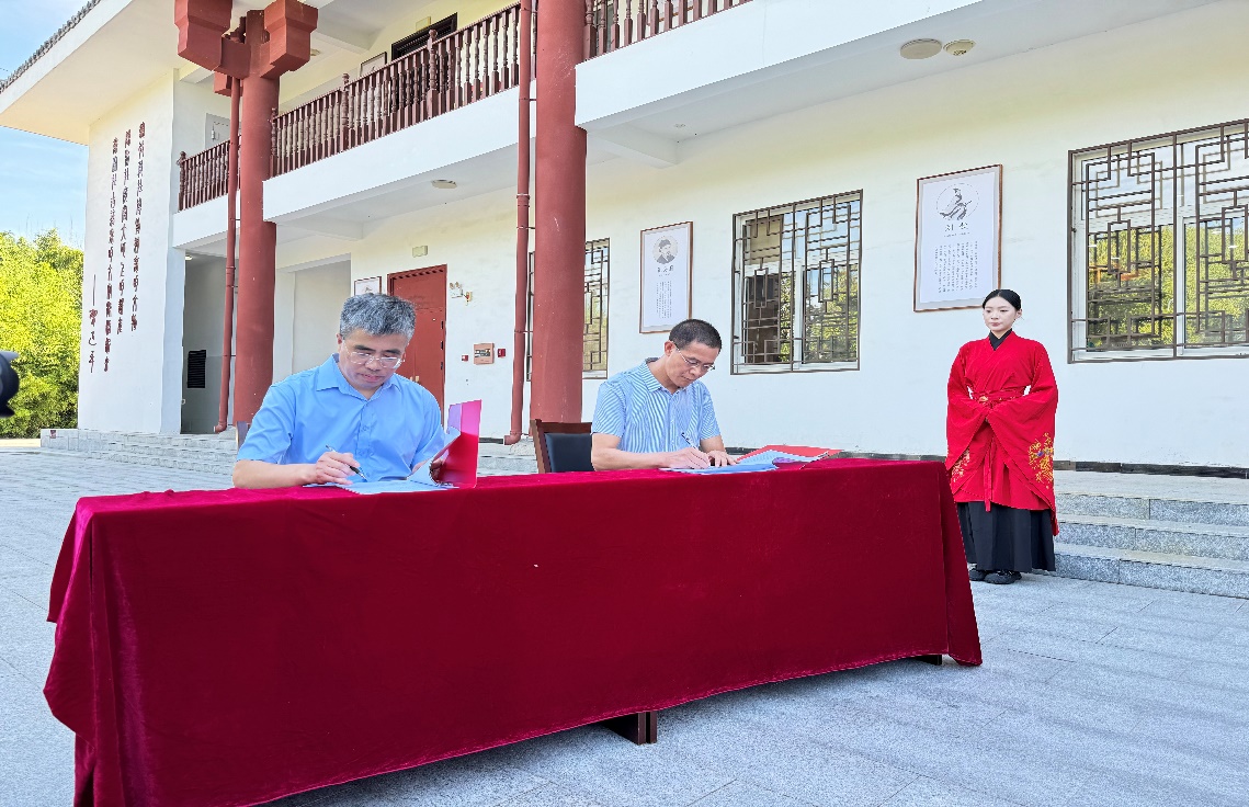 2024年8月4日上午,best365中国官方网站与漯河市许慎文化研究保护中心在漯河市许慎文化园东观藏书楼举行了研究生社会实践基地、本科生校外实习基地合作协议签约仪式。院长邓晓成、漯河市许慎文化研究保护中心主任吕亦舒代表双方签字。学院党政办主任李华军、中文系主任杨志敏及国际中文教育硕士生代表出席仪式。