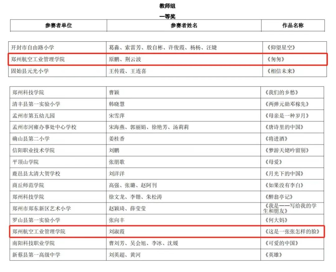 其中,我校教师原鹏、荆云波的作品《匆匆》和刘淑霞的作品《这是一张张怎样的脸》均荣获教师组一等奖。