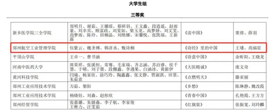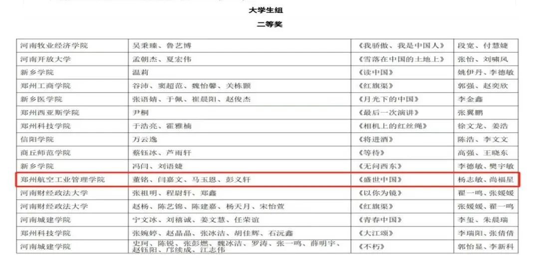 我校学生董铭、闫嘉文、马玉恩、彭义轩的作品《盛世中国》荣获大学生组二等奖,伍紫云、魏圣博、韩济丞、甄诗桐的作品《诗经》里的中国荣获大学生组三等奖。