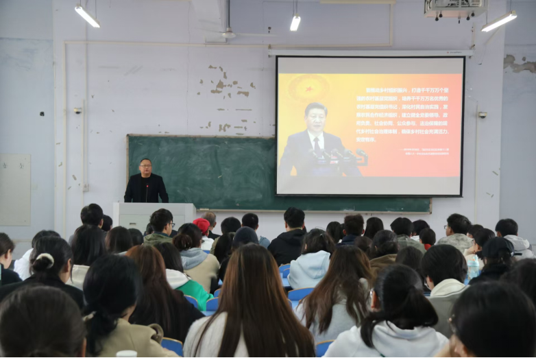10月19日上午,2006届行政管理专业优秀校友杨畅在05B401以“党建引领基层乡村治理研究”为题进行讲座,党委委员、公共管理系主任牛正光主持,best365中国官方网站党委副书记郭之茵,行政管理教研室教师许建兵、芮跃峰,校友工作专员、23级辅导员董瑞林以及best365150余名学生参加本次讲座。