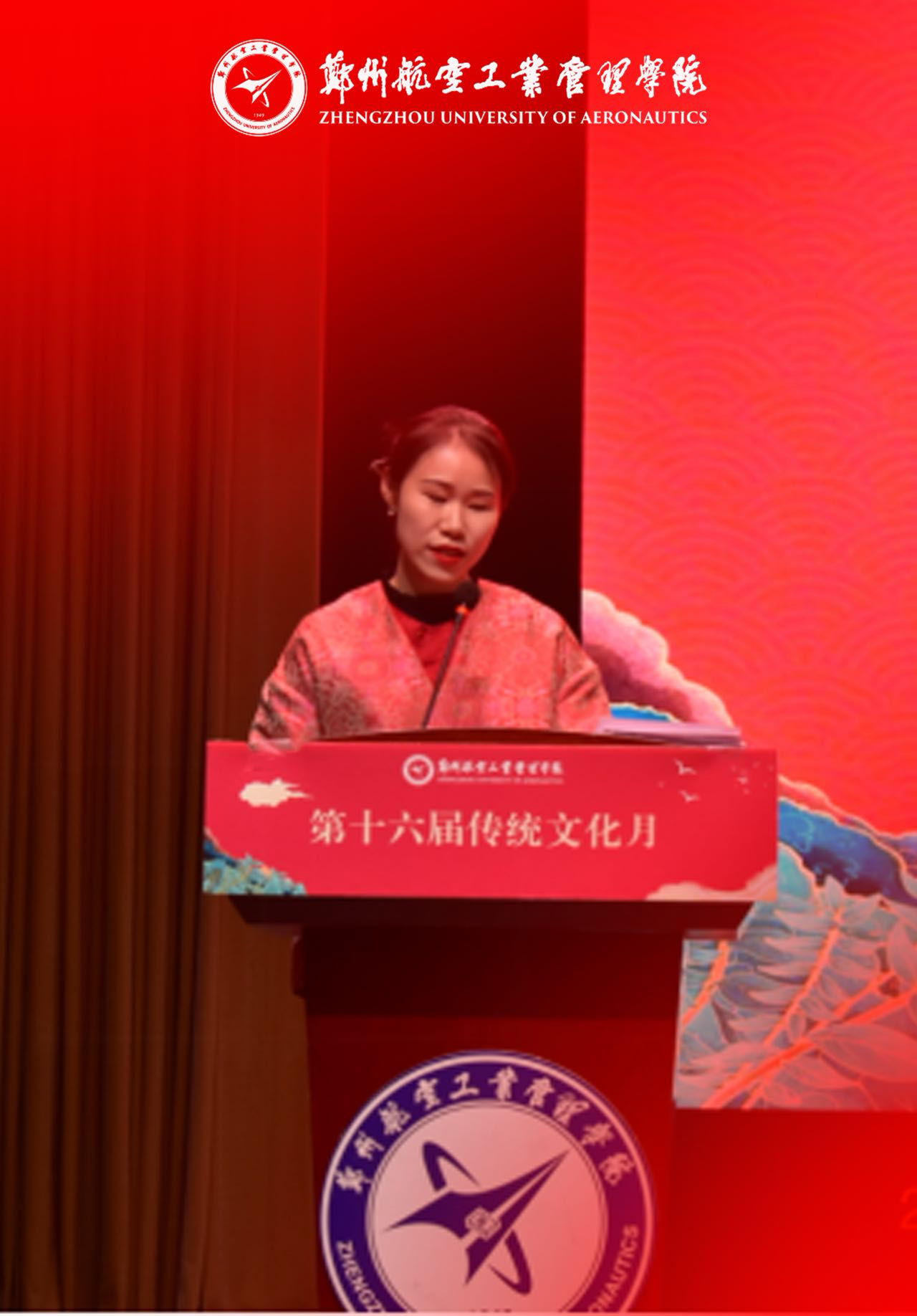 郭之茵向广大师生详细介绍了“第十六届传统文化月”方案。她介绍了传统文化月即将开展的五项活动,并希望同学们多关注best365中国官方网站公众号信息,积极参与活动,充分感悟中华优秀传统文化中的人文精神、道德规范、价值理念。