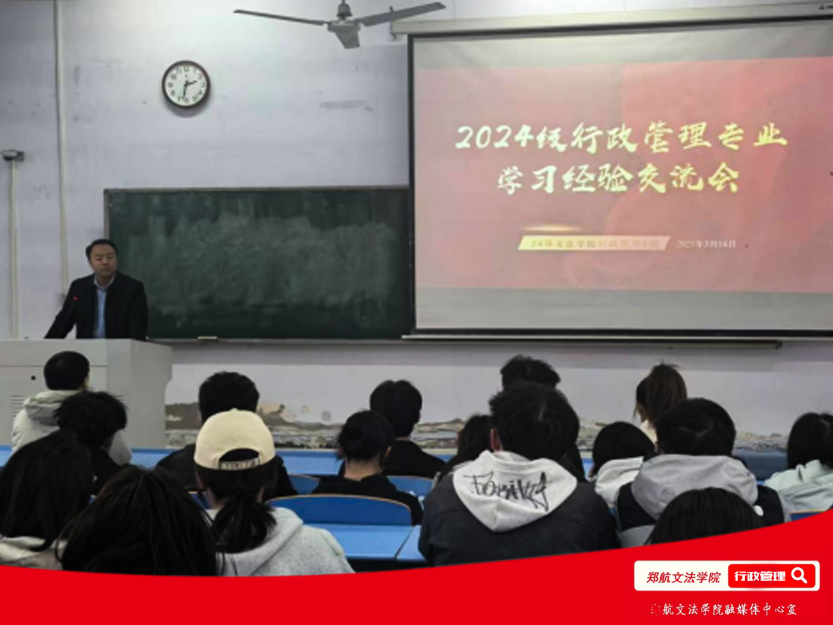 为贯彻落实学院“专业力量下沉一线”的工作要求,发挥专任教师担任班主任的积极作用,2025年3月14日下午,2024级行政管理一班在05B306举行了一场别开生面的主题班会。学院党委委员、公共管理系主任牛正光,公共管理系教工党支部书记计宁,公共管理系教师芮跃峰,2021级行政管理专业学生常圣峰、韩忠杨,2022级行政管理专业学生吴昊宇以及2024级行政管理一班全体学生参加了主题班会。班会由班主任李艳荣主持。