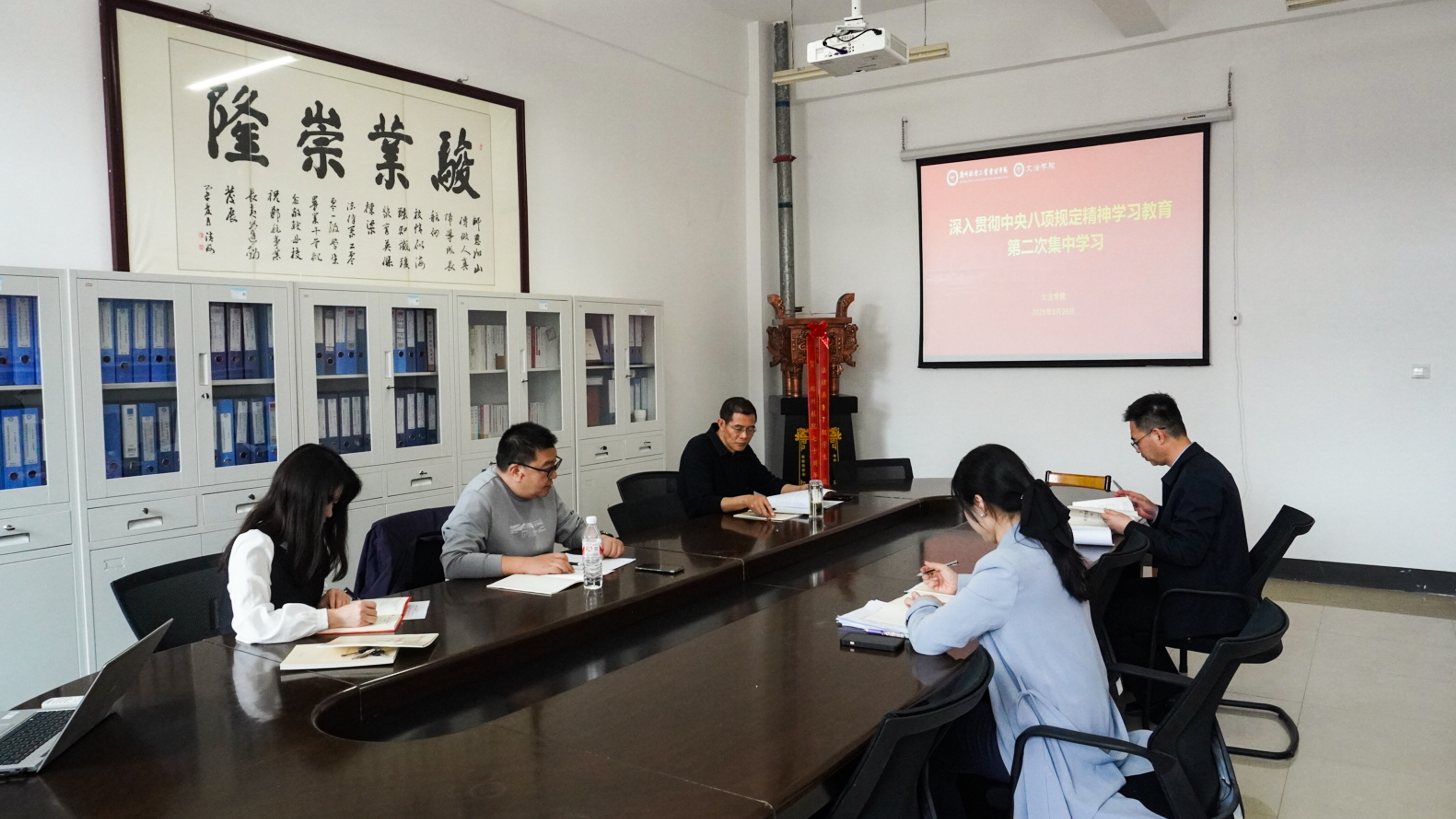 学院其他班子成员,分别结合工作实际,就如何将中央八项规定精神落实到教育教学,科学研究,学科建设,党员管理等具体工作进行了逐一发言。