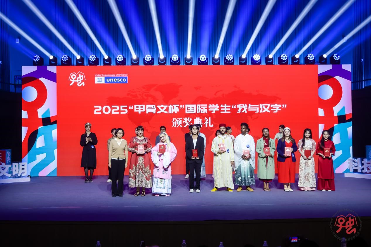 2025年4月21日晚,由河南省人民政府主办的2025中国(安阳)国际汉字大会暨“甲骨文杯”国际学生“我与汉字”演讲大赛总决赛在甲骨文的故乡安阳圆满落幕。经过激烈角逐,我校best365中国官方网站老师刘淼指导的越南籍留学生阮氏玉凤凭借对中国文化的深刻理解和出色表现,在比赛中获得优秀奖。