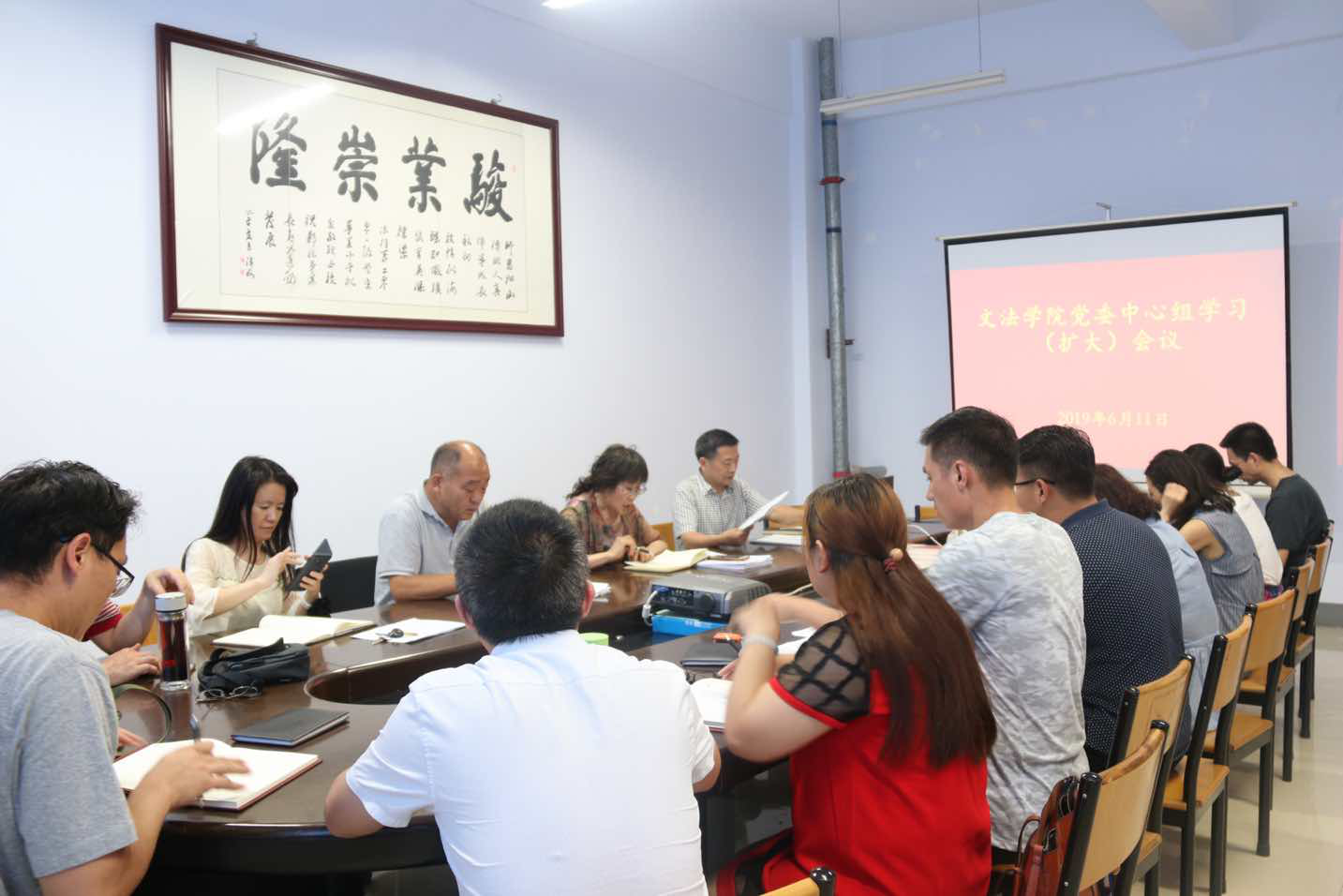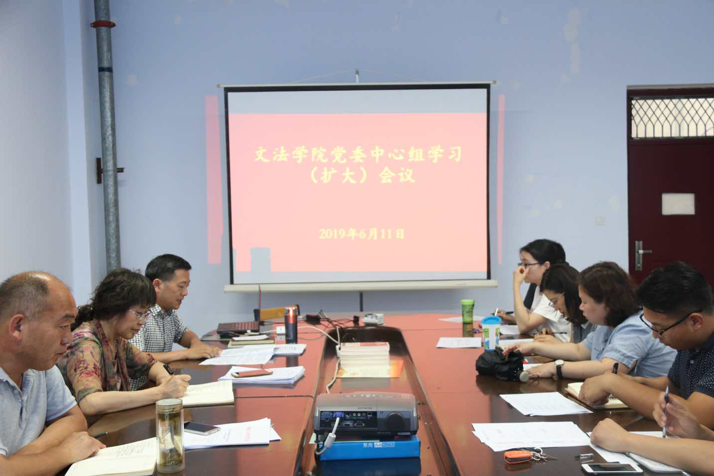 2019年6月11日下午,best365中国官方网站于05B407召开党委中心组学习(扩大)会议, 党委书记路玲、院长邢培泉、党委副书记李达、副院长杜勤、组织员卫铁林以及党支部书记出席了此次会议。会议由best365中国官方网站党委书记路玲主持。