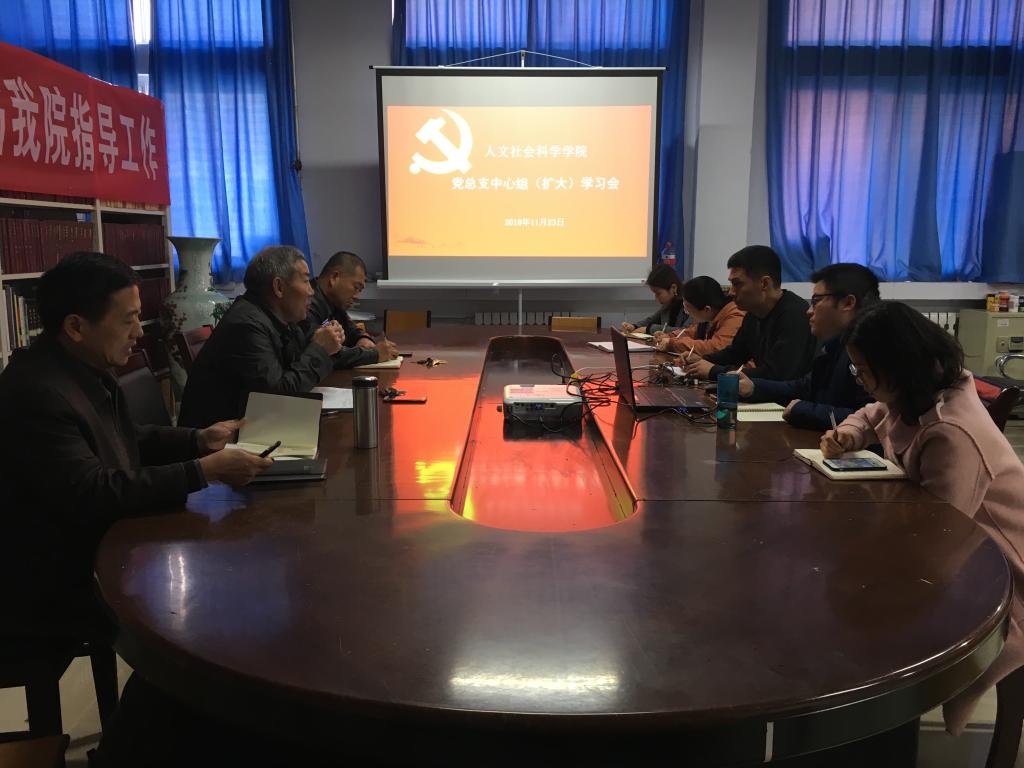 11月23日,人文社科学院党总支在学院会议室召开总支中心组(扩大)学习会,专题学习十九大精神。学院党总支委员卫铁林、姜运仓、李达以及学生支部书记、办公室主任等参加了本次学习。党总支书记卫铁林主持学习会。