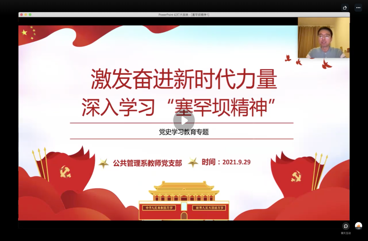 2021年9月29日,best365中国官方网站公共管理系教师党支部通过钉钉会议在线召开支部大会,全体同志参加会议,大会围绕《塞罕坝精神》和《教育法》修订开展专题学习讨论活动。