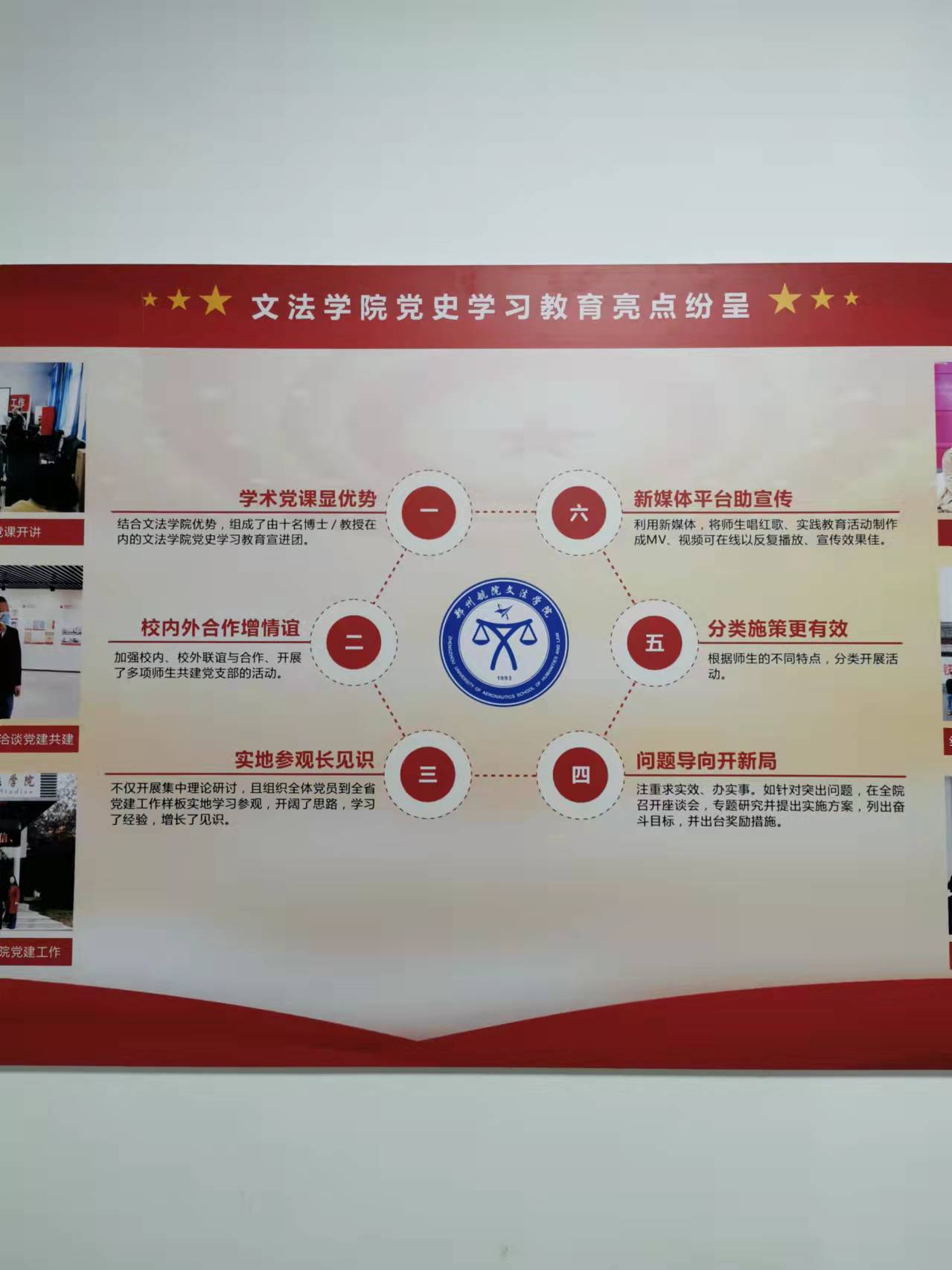 党建文化墙的建设得到了best365中国官方网站全体教职工的大力支持,其内容十分丰富,包括十九届六中全会精神,习近平总书记关于教育的重要论述、对青年的寄语,党的一大到十九大的发展历程,best365中国官方网站党建工作方法,党史学习教育为师生办实事成果,“师生共建”特色案例,“廉政教育”专栏,含有历届毕业生的合影的毕业墙,党的基层组织的规定,党的入党誓词的演变,党徽的正确佩戴方法,党务公开栏,共产党员承诺等板块,以及近年来师生在教学、科研、师德师风、传统文化等方面取得的一系列成果。