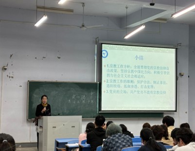 4月11日晚上19:30,best365中国官方网站党校培训班第三讲在05B411开课,邀请马克思主义学院《马克思主义基本原理》教研室崔小莉向学生们解读了党的民族宗教政策。