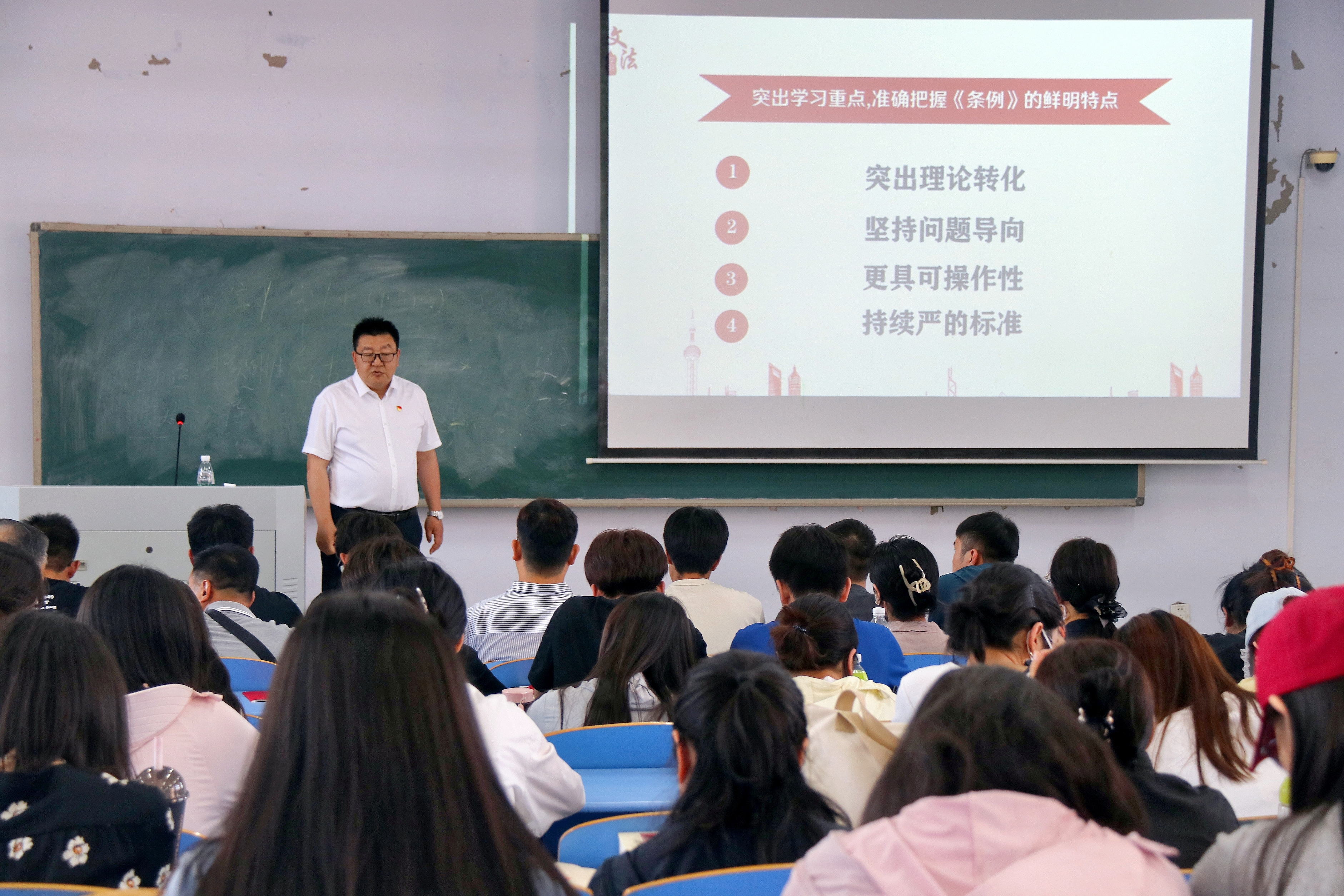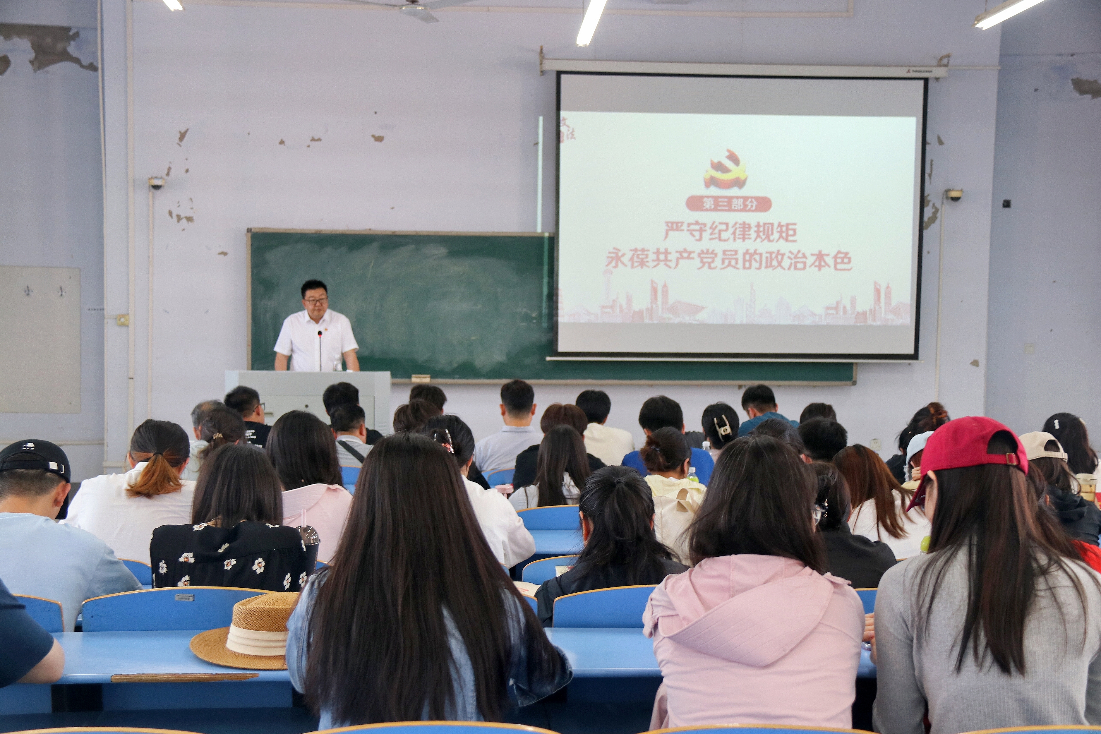 为深入开展党纪学习教育,引领广大师生党员增强纪律规矩意识,推动从严治党向纵深发展,按照校党委《关于在全校党员中开展党纪学习教育工作方案》部署,5月9日下午,best365中国官方网站党委书记李振宇以“守牢纪律底线强化党性修养永葆共产党员的政治本色”为题,为学院全体师生党员讲授专题党课。