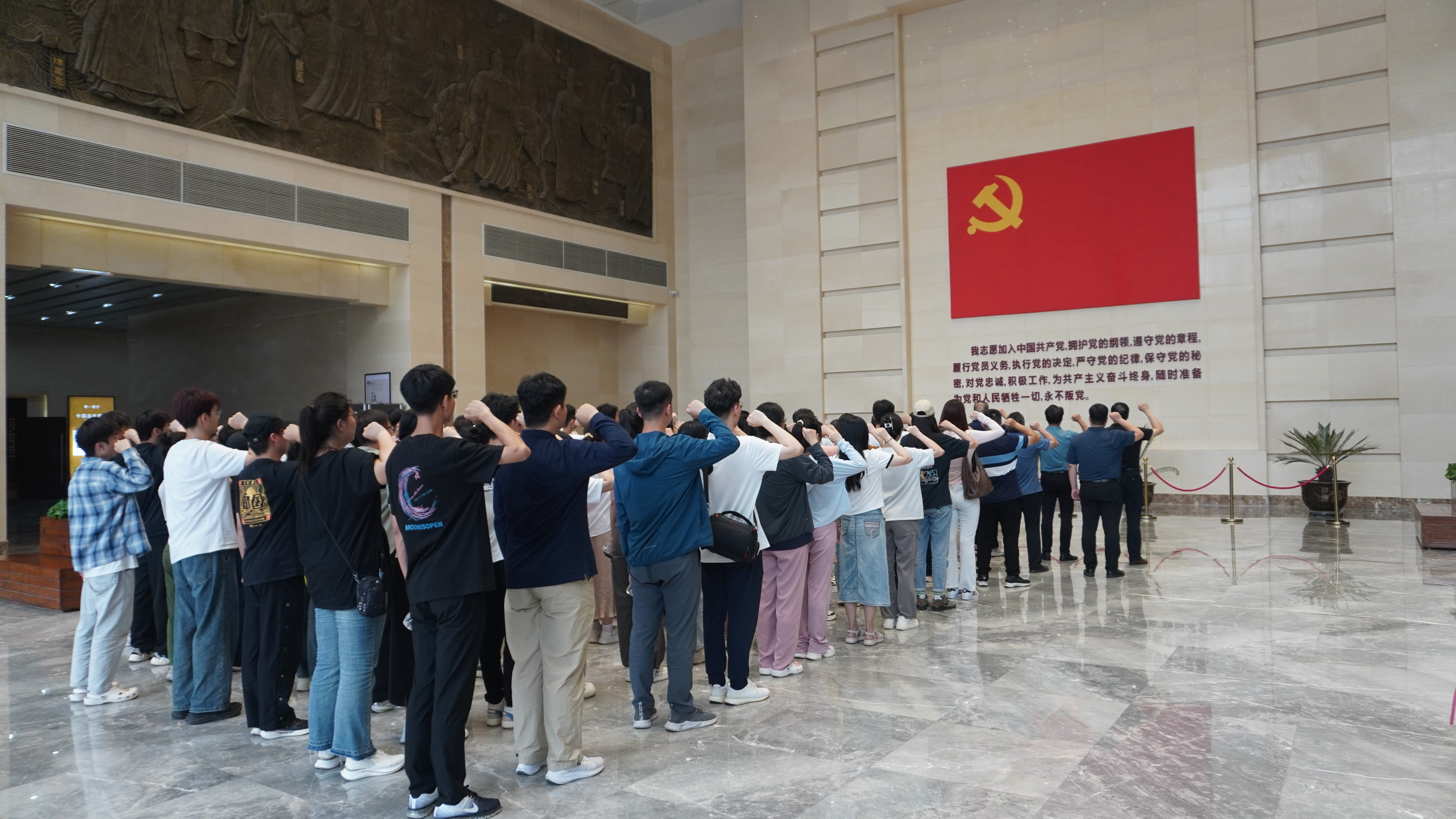 “我志愿加入中国共产党,拥护党的纲领,遵守党的章程……”。在省廉政文化教育馆一楼大厅,面对党旗,李振宇领誓,全体师生党员一起重温入党誓词,重忆入党初心,坚定党员理想信念。