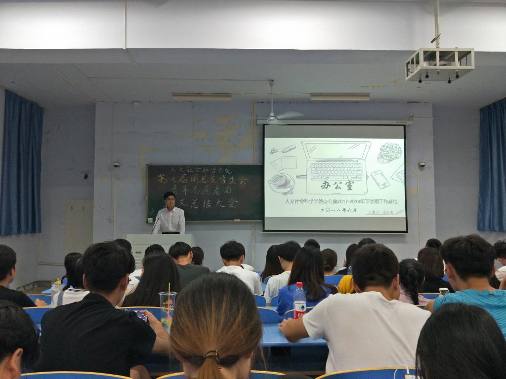 6月28日晚七点半,人文社会科学学院团总支学生会、青年志愿者团在教室05c301召开2017—2018学年总结大会。全体学生会和青年志愿者团成员参加了此次会议。